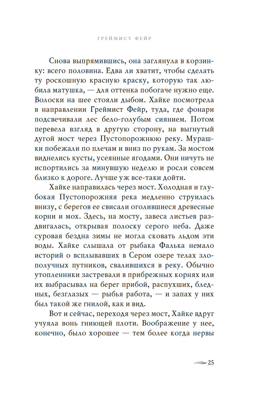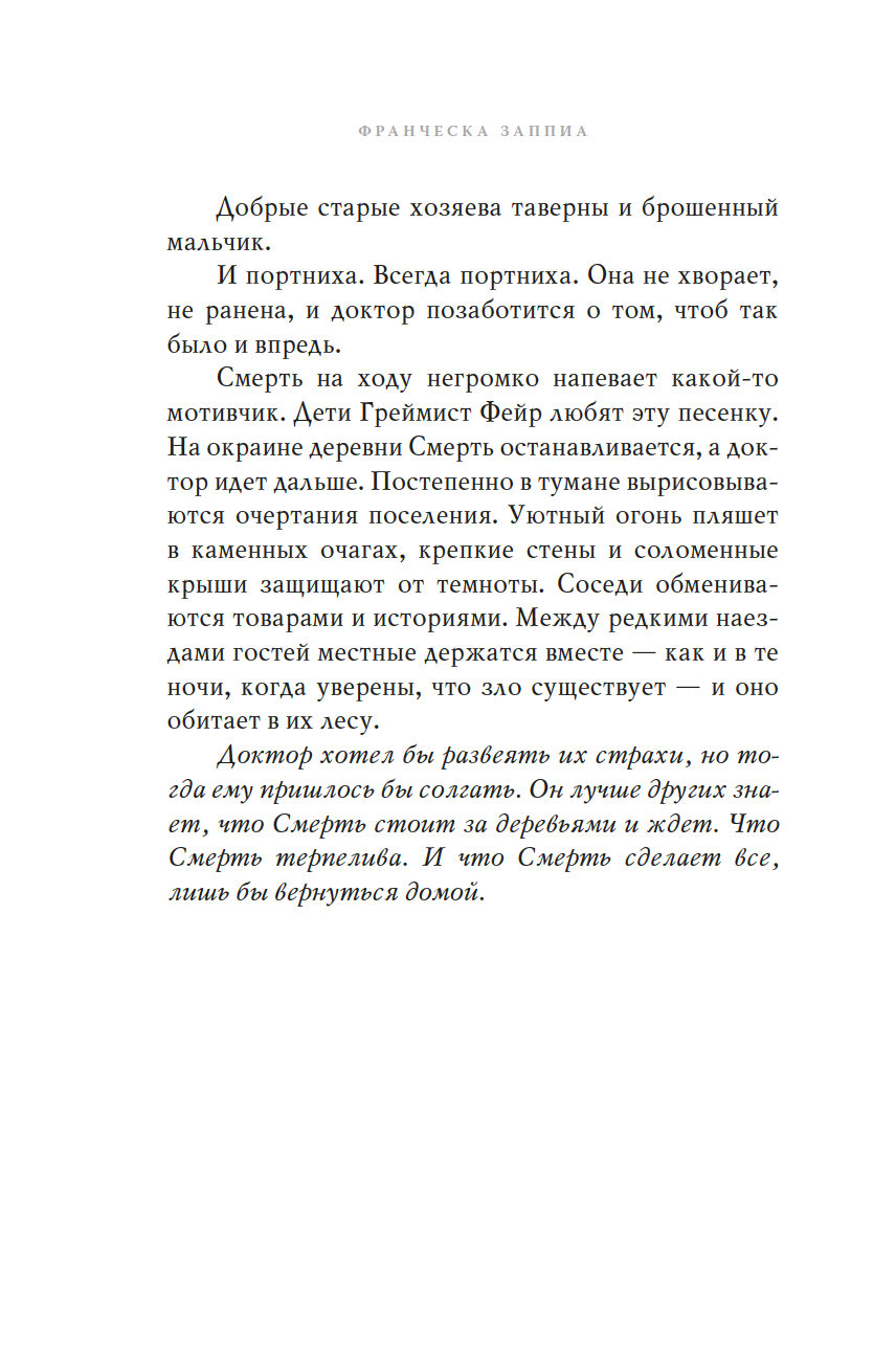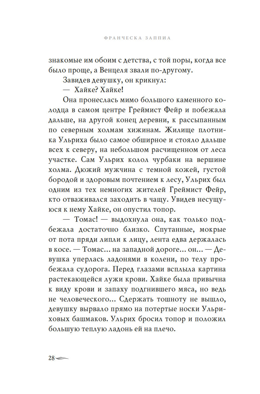 Жители деревни Греймист Фейр знают, что лес – место опасное, прошитое магией, и что с дороги сходить не следует, иначе навлечешь на себя неприятности. Варги всегда настороже, они жаждут заблудших невинных душ. Они охочи до пополнения своей стаи. Когда Хайке, юная портниха, обнаруживает на дороге тело соседского мальчишки, она отправляется на поиски виновного в его гибели – и не куда-нибудь, а в логово самой Смерти. Но Хайке даже не догадывается, какая череда странных событий привела к тому, что было нарушено главное правило деревни.