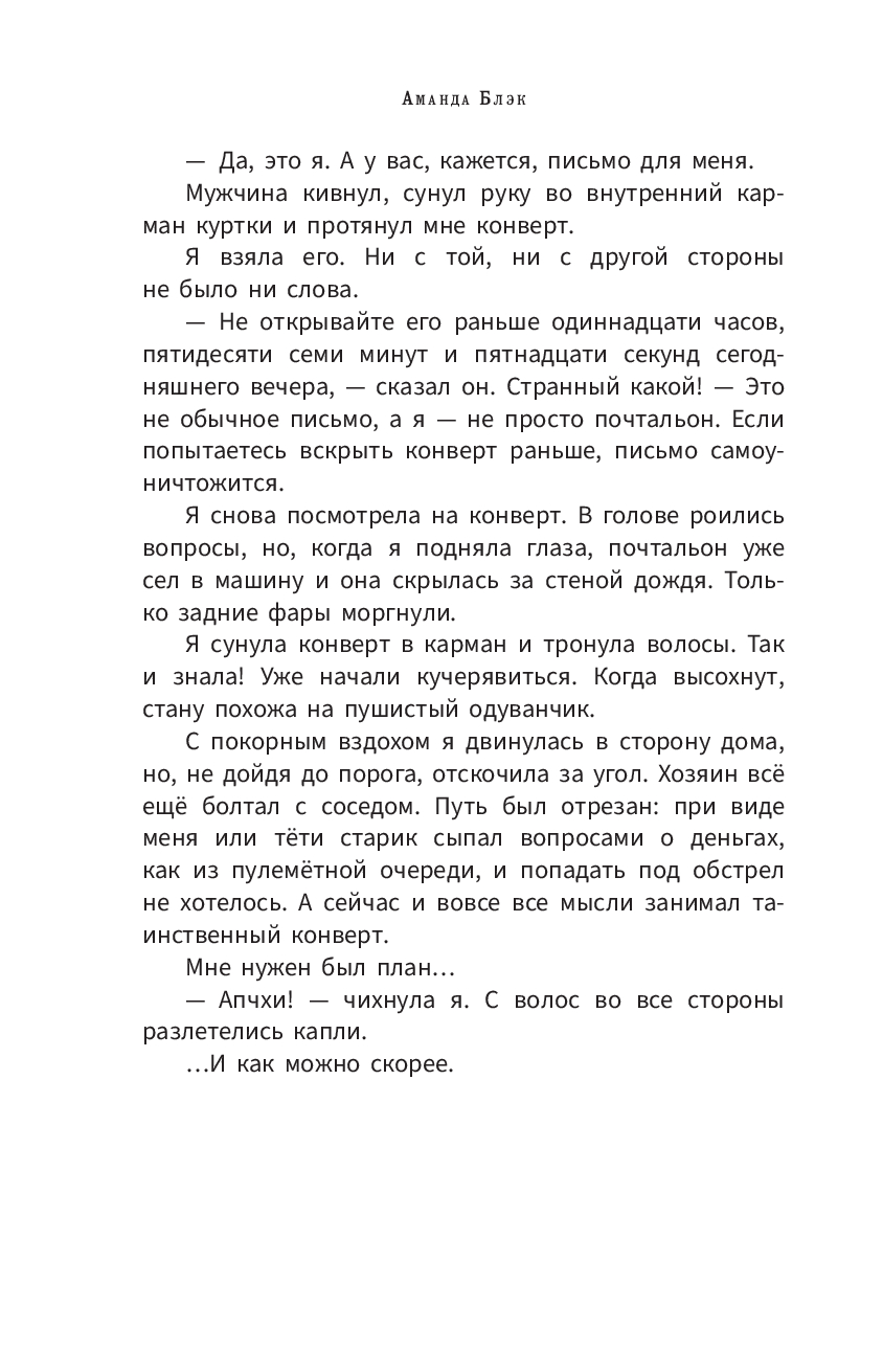 В свой тринадцатый день рождения Аманда Блэк получает загадочное письмо. Оно меняет её жизнь навсегда: вместе с тётей Паулой девочка переезжает в хранящий древние тайны особняк семьи Блэк.