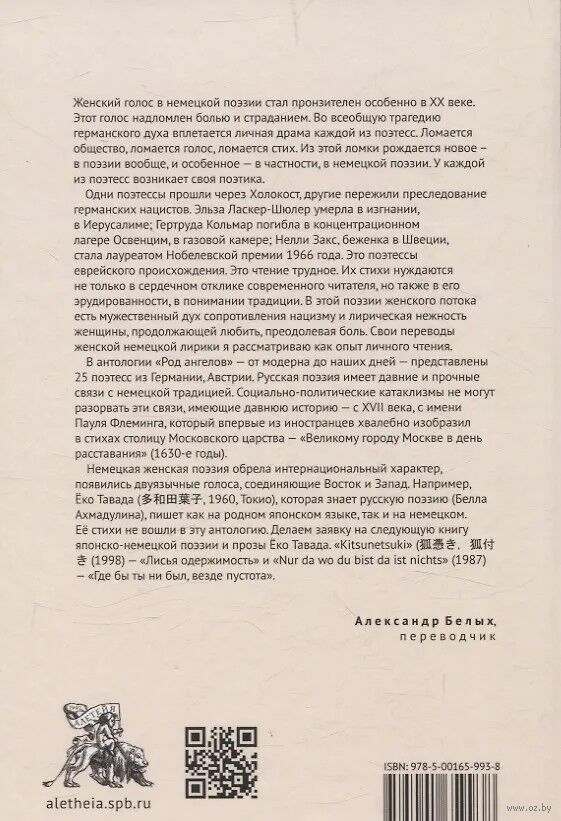 "Немецкая лирика" (2022), "Я – иероглиф немецкой речи" (2024), "Род ангелов" (2025) – три книги моего трудного опыта чтения и личностного прочтения немецкой поэзии. Личная экзистенциальная драма и европейская трагедия XX века вошла в плоть живого слова немецкоязычной лирики женского потока.