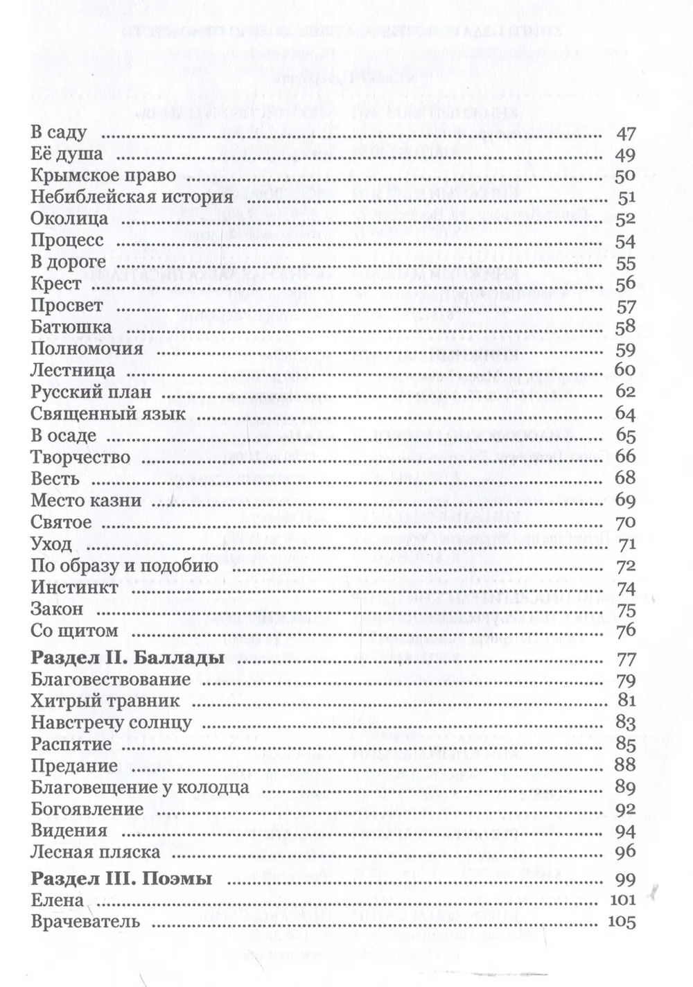 В первый раздел вошли лирические произведения. Второй раздел объединил исторические повествования и предания. Здесь представлены, в меру разумения автора, Пречисиая Дева Мария, Иоанн Креститель, Иисус Христос, Иуда Искариот, евангелисты Нового Завета, мученики первых веков христианства, святые русские князья.