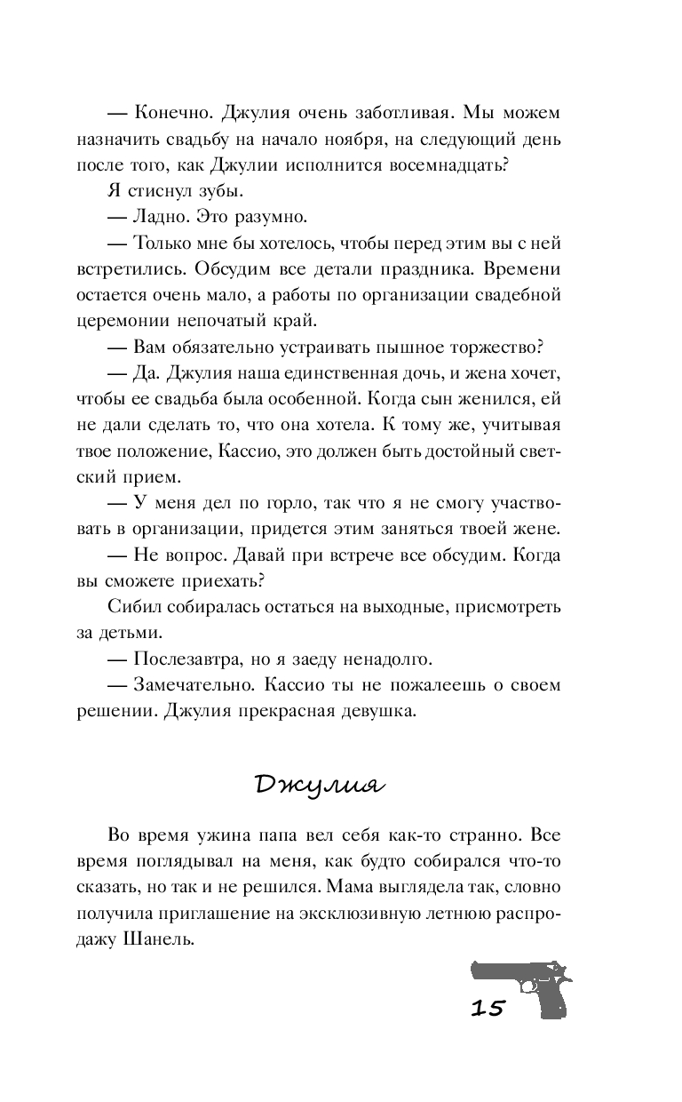 Кассио Моретти, босс Филадельфии, правит городом железной рукой. Он недавно овдовел, и у него остались двое маленьких детей. Теперь ему нужна достойная, умеющая безупречно вести себя женщина, которая выйдет за него замуж и станет им матерью. В мире Кассио брак – обязанность, а не удовольствие. Каждый аспект его жизни подчинен правилам и традициям. И выбор будущей супруги не станет исключением. Его избранница – Джулия, очаровательная, но своенравная девушка, едва достигшая совершеннолетия. Кассио не уверен, что из нее получится хорошая мать. Но ее присутствие рядом словно сладкое искушение, отивостоять которому невозможно.
