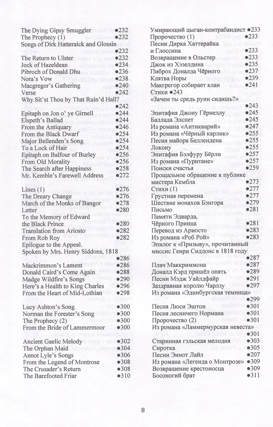 Вальтер Скотт известен нашему читателю как плодовитый романист, однако в начале творческого пути он прославился как поэт. Перу Скотта принадлежат 9 поэм, переводы и подражания немецким балладам, многочисленные стихотворения и поэтические эпиграфы к главам исторических романов. В книге представлены, часто впервые, переводы малых форм этой части литературного наследия мастера.