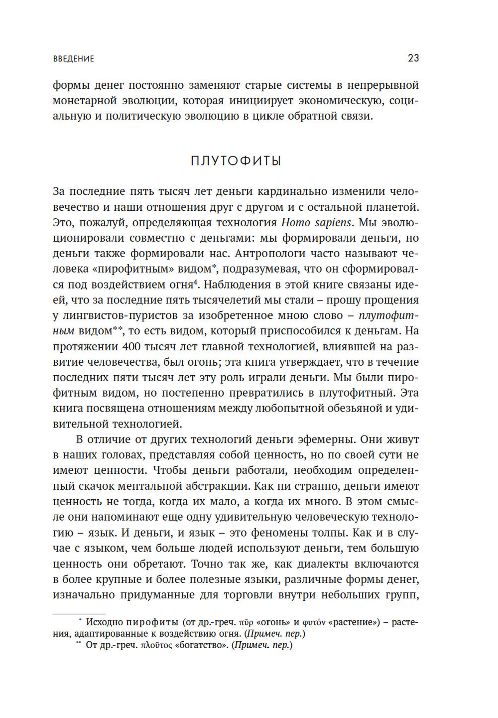 Деньги неразрывно связаны с каждой сферой нашей деятельности от политики до искусства. Греческая культура распространилась по Средиземноморью благодаря серебряным тетрадрахмам, а Римская империя захватила мир за счет кредита. Итальянское Возрождение началось с легкой руки флорентийских банкиров, а самое позорное европейское наследие, колониализм, стало возможным из-за появления акционерных обществ. История денег – это история самого любопытного, изобретательного и опасного вида животных на земле. Наша история.