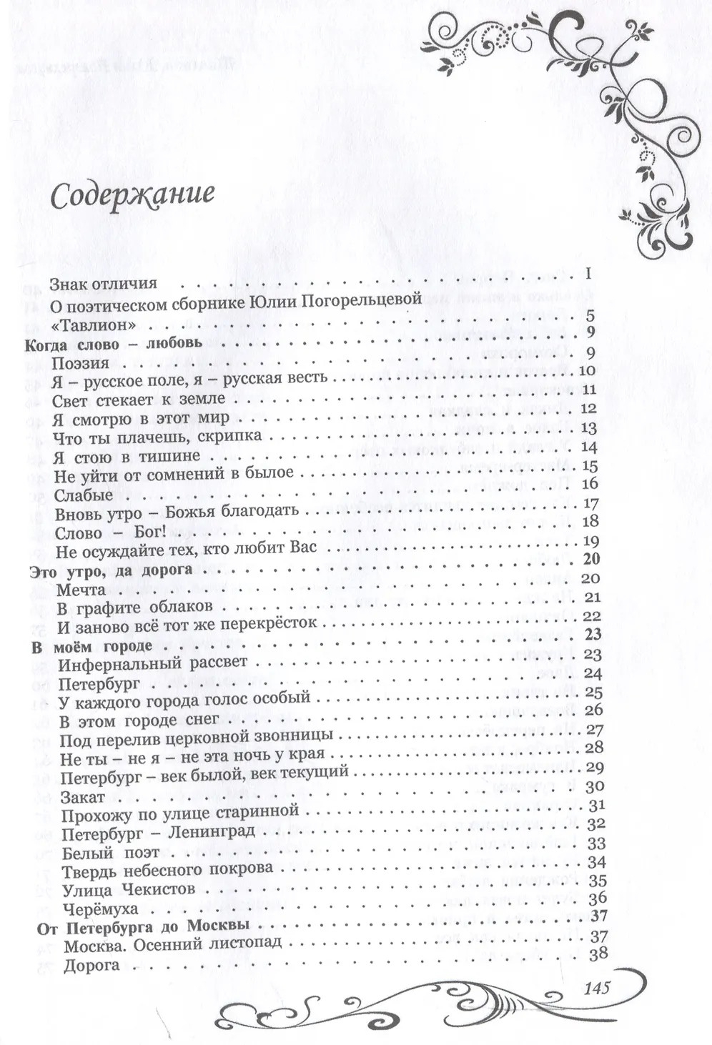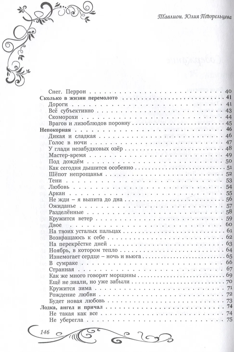 "Тавлион" книги стихотворений петербургской поэтессы Юлии Погорельцевой – лирика, остро и тонко ощущающего гармонию все, что ее окружает.