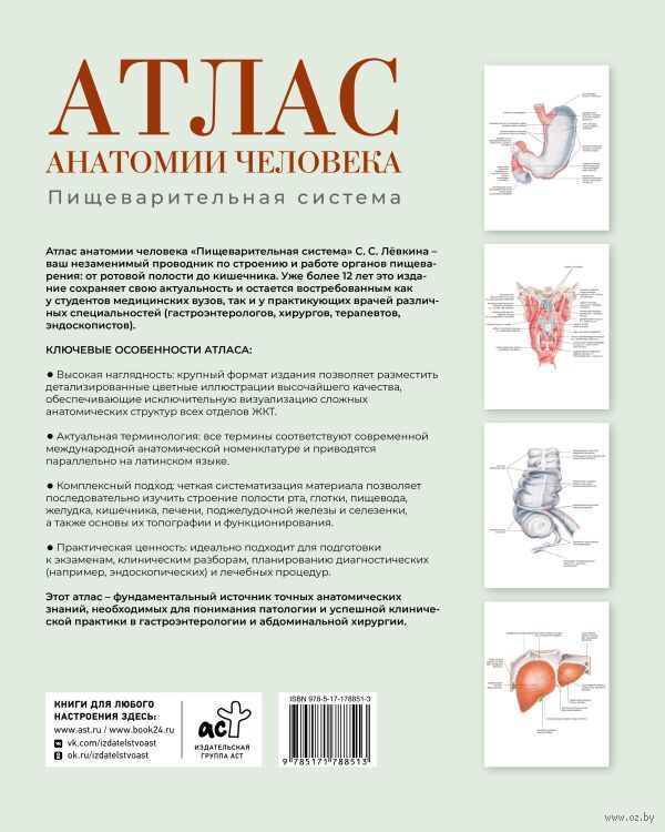 Атлас анатомии человека "Пищеварительная система" С. С. Лёвкина – ваш незаменимый проводник по строению и работе желудочно-кишечного тракта и вспомогательных органов. Уже более 12 лет это издание сохраняет свою актуальность и остается востребованным как у студентов медицинских вузов, так и у практикующих врачей различных специальностей (гастроэнтерологов, хирургов, терапевтов, эндоскопистов).