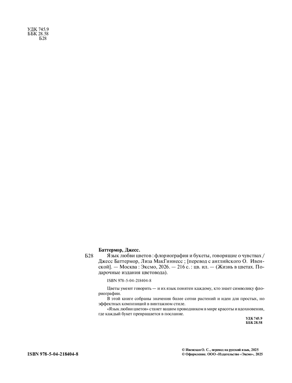 | Название в оригинале | Love Language of Flowers: Floriography and Elevated, Achievable, Vintage-Style Arrangements (Types of Flowers, History of Flowers, Flower Meanings |