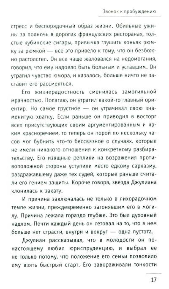 Робин Шарма – всемирно известный писатель, мыслитель-гуманист. Он входит в число ведущих консультантов по лидерству и личностной оптимизации, его клиенты – знаменитые миллиардеры, деятели искусств, звезды профессионального спорта и многие компании из рейтинга "Fortune-100".