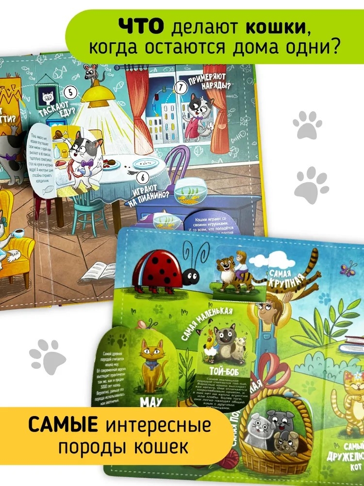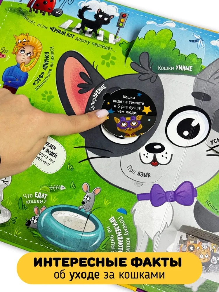 Эта красочная книжка станет настоящим проводником в мир кошек, отвечая на самые интересные вопросы: что любят кошки? Почему они боятся воды? Какие породы существуют и какие секреты скрывают наши домашние любимцы? Открыв одно из 45 увлекательных окошек, ваш ребенок узнает множество интересных фактов о поведении и особенностях котов, например, почему у них шершавый язык!