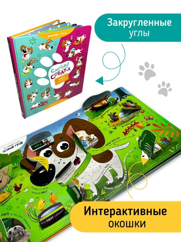 "Смотри! Собака" – интерактивная развивающая книга, которая подарит вашим детям увлекательное путешествие в мир любимых пушистиков!