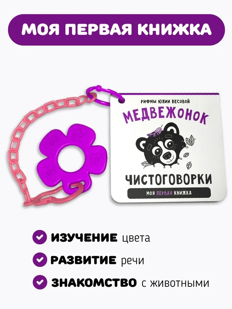Книжка-малышка с прорезывателями для зубов представляет собой набор для раннего развития, разработанный с учетом особенностей восприятия маленьких детей.