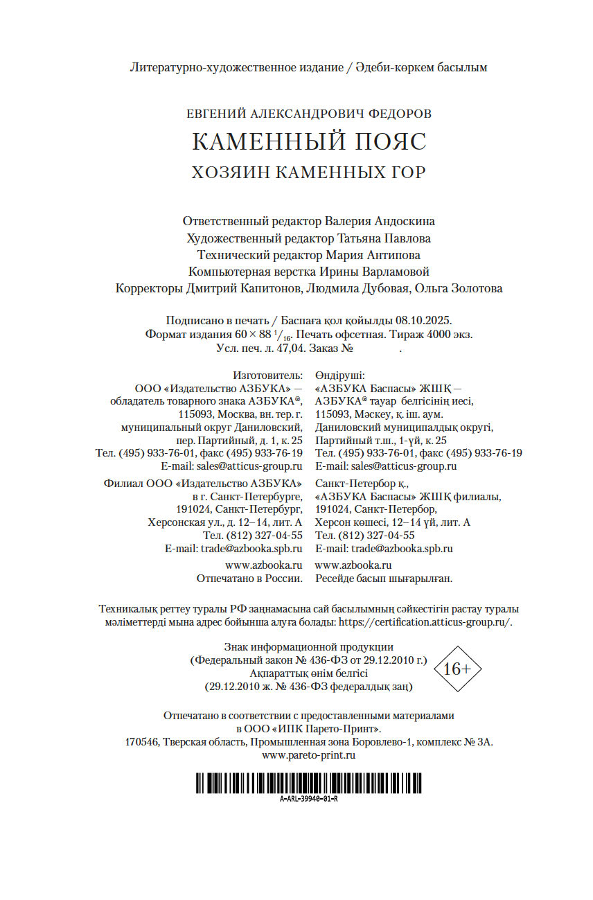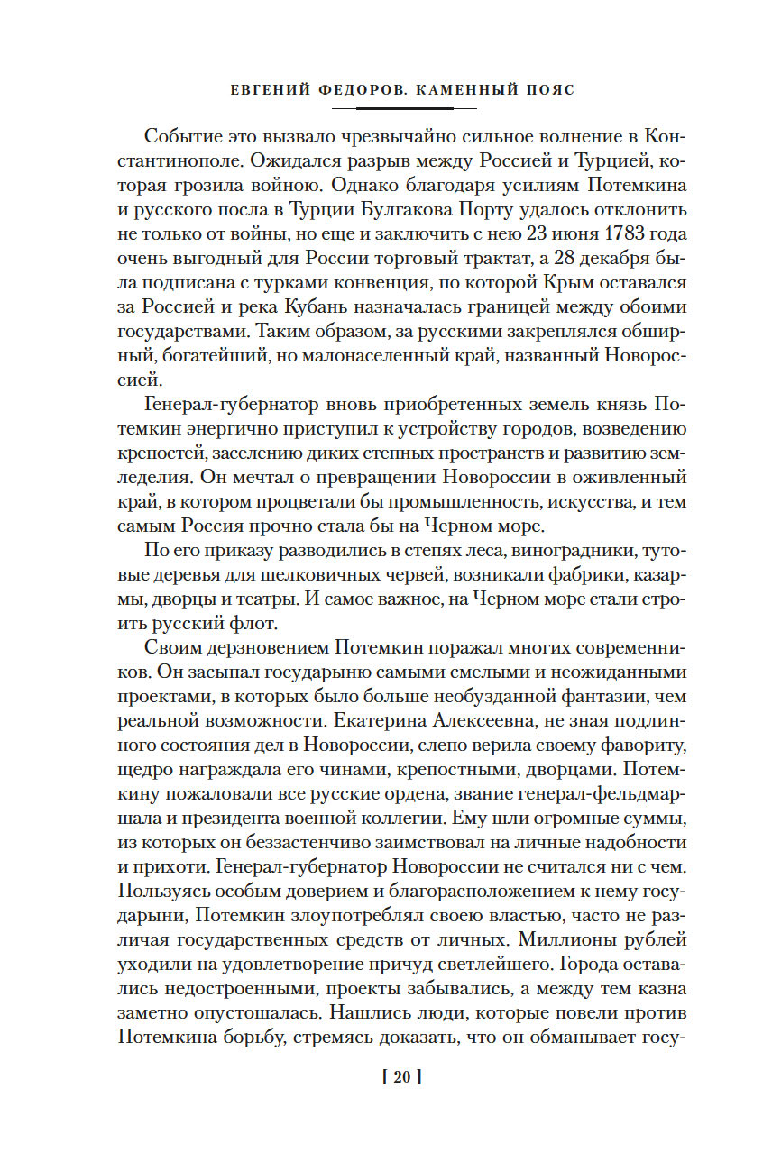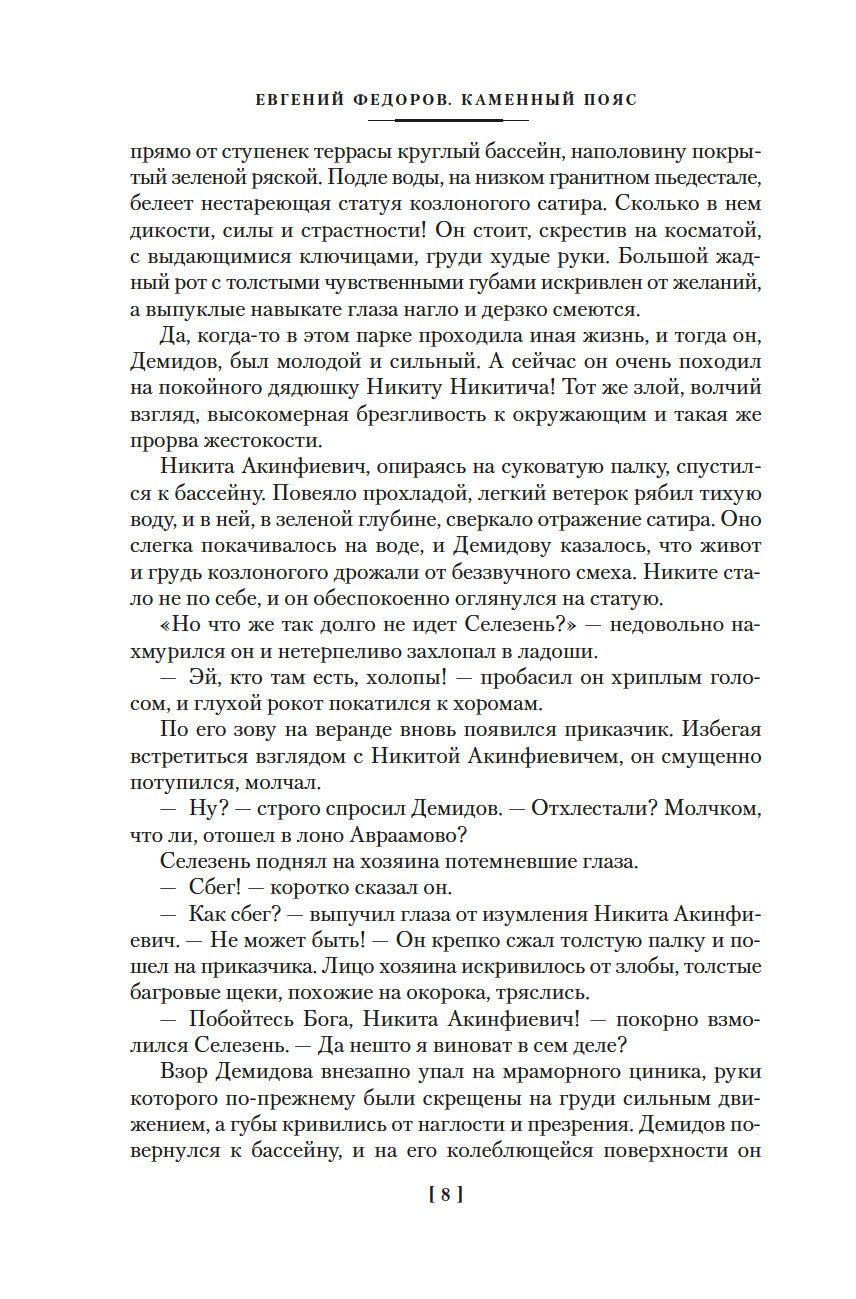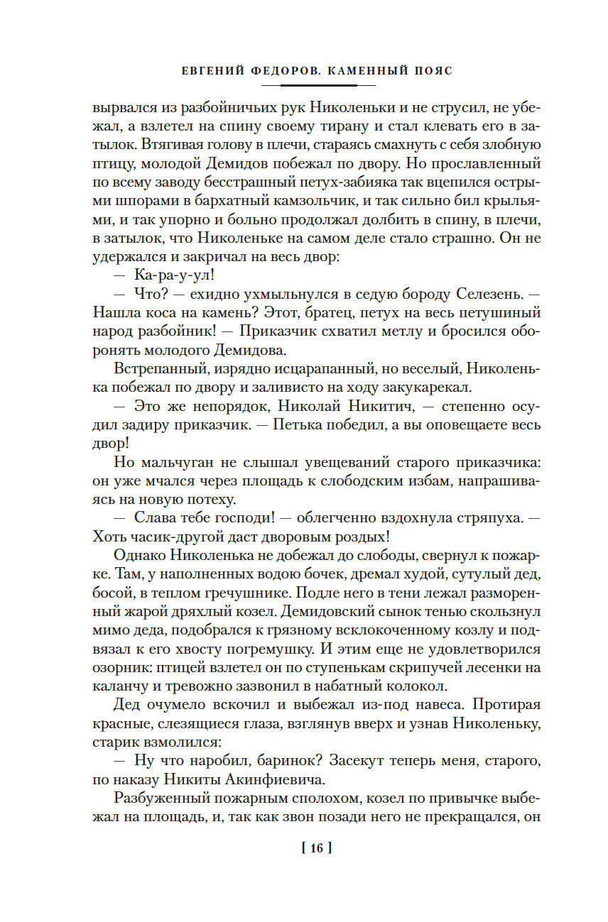 Талантливый тульский оружейник Никита Демидов получил в награду от самого Петра I уральские земли и заводы – так началась история богатейшей промышленной династии Демидовых, находчивых и предприимчивых, жестоких и требовательных, властных и самоотверженных. История этой семьи неразрывно соединилась с историей России. "Каменный Пояс" Евгения Федорова, цикл произведений, посвященный Демидовым, любим читателями за историческую достоверность и точность в деталях, выразительную речь персонажей, захватывающий сюжет.