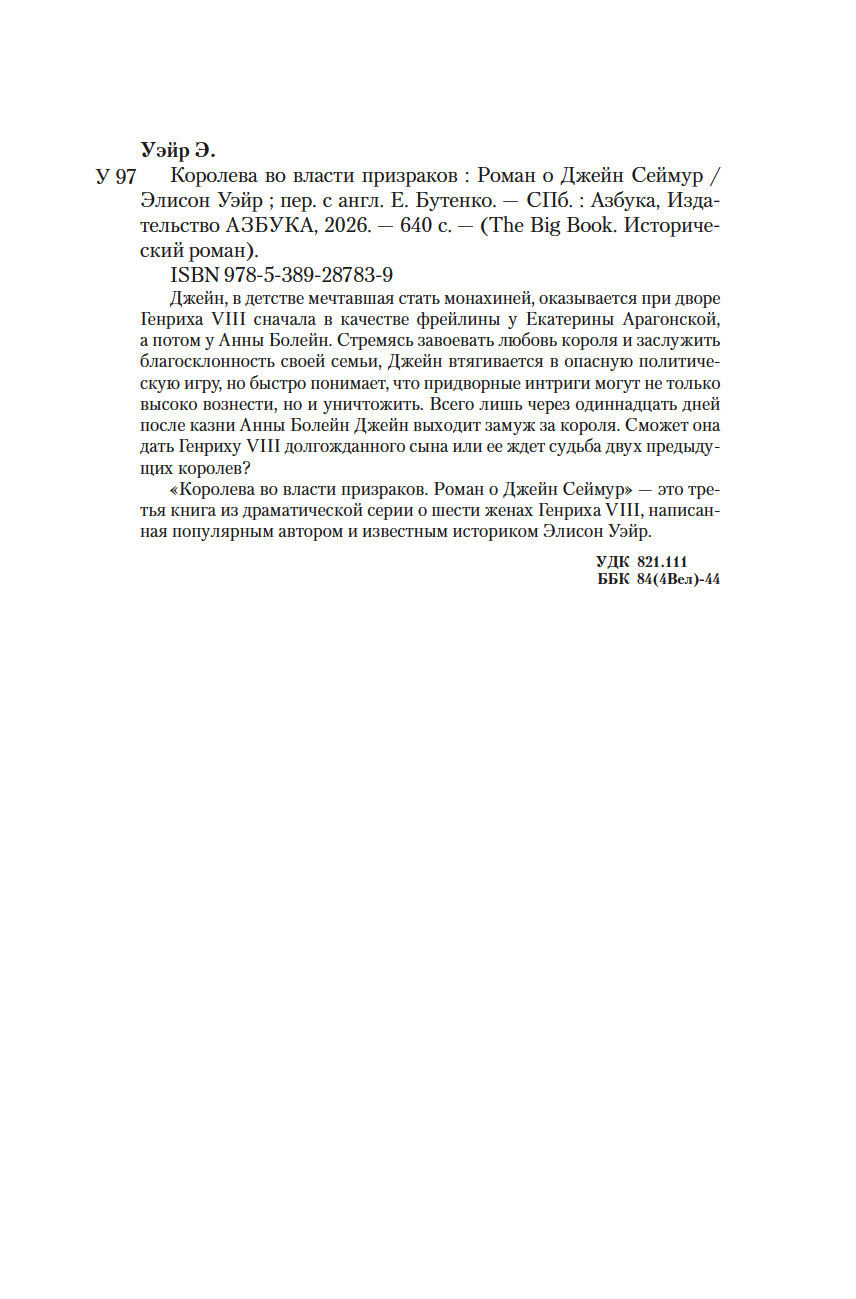 "Королева во власти призраков. Роман о Джейн Сеймур" – это третья книга из драматической серии о шести женах Генриха VIII, написанная популярным автором и известным историком Элисон Уэйр.