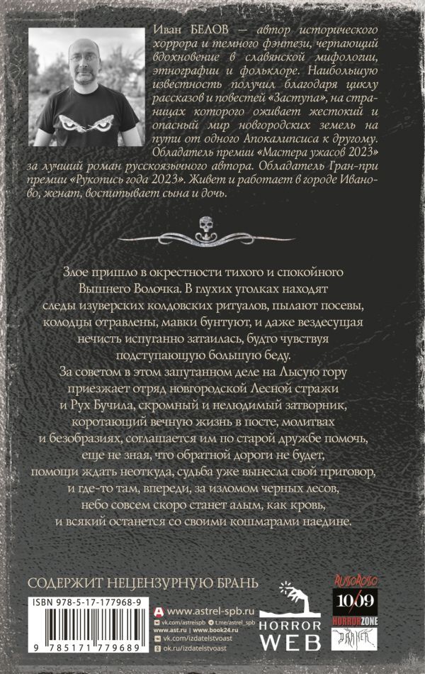 За советом в этом запутанном деле на Лысую гору приезжает отряд новгородской Лесной стражи, и Рух Бучила, скромный и нелюдимый затворник, коротающий вечную жизнь в посте, молитвах и безобразиях, соглашается им по старой дружбе помочь, еще не зная, что обратной дороги не будет, помощи ждать неоткуда, судьба уже вынесла свой приговор и где-то там, впереди, за изломом черных лесов, небо совсем скоро станет алым, как кровь, и всякий останется со своими кошмарами наедине.