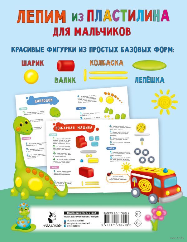 "Лепим из пластилина для мальчиков" – самоучитель, который поможет малышу своими руками сделать фигурки из пластилина. Детальные уроки, пошаговые схемы и крупные красочные образцы – ребёнок сможет справиться даже без помощи взрослых! Классная подборка поделок, которые будут интересны мальчикам: динозаврики, машинки, забавные персонажи и зверята. Занимаясь лепкой по нашей книге, ребёнок потренирует пальчики и подготовит руку к письму, разовьёт воображение и творческое мышление, внимательность и усидчивость.