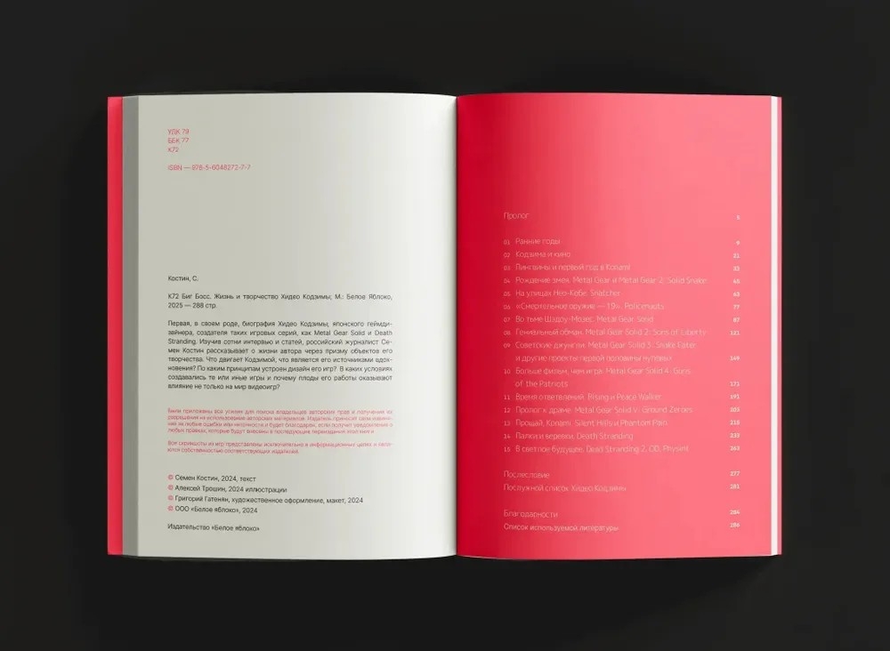 "Биг Босс" – детальное и увлекательное путешествие в мир знаменитого японского геймдизайнера Хидэо Кодзимы. Ознакомившись с сотнями сторонних источников, множеством интервью и других материалов, журналист Семён Костин написал первую неофициальную биографию Кодзимы. Здесь он рассматривается через призму объектов его творчества: от постмодернистских шедевров Snatcher и Policenauts до признанных блокбастеров из игровых серий Metal Gear Solid и Death Stranding.