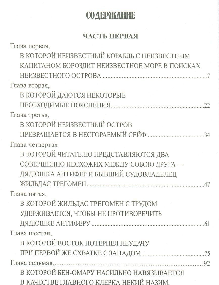 Осень 1831 года. Неизвестный корабль с неизвестным капитаном бороздит неизвестное море в поисках неизвестного острова. Судно уже столько раз меняло курс, что вконец запутало как шпионов, болтавшихся где-то на хвосте, так и саму команду. Где же этот остров? Кто или что там ждет? И что находится в трех окованных железом бочках, которые хозяин шхуны то и дело помышляет швырнуть за борт? И еще интересный вопрос: какое отношение ко всему этому могут иметь два эксцентричных французских провинциала – вспыльчивый, как динамит, дядюшка Антифер и его антипод-приятель Жильдас Трегомен, всегда пожимающий протянутую руку только большим и указательным пальцами?