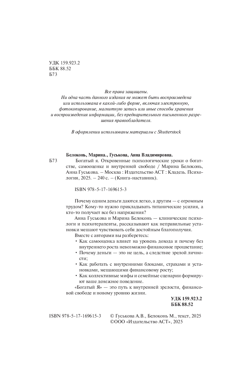 Богатый я. Откровенные психологические уроки о богатстве, самооценке и внутренней свободе