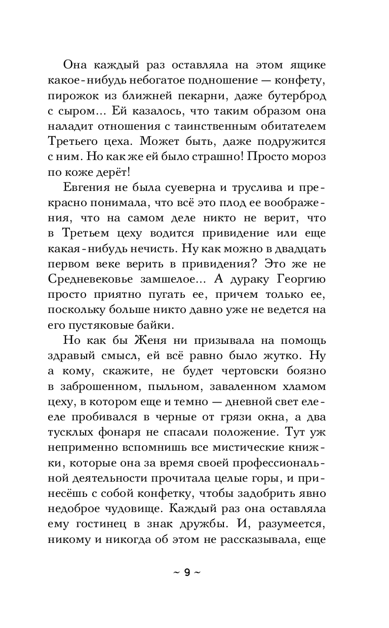 Иоганн Гутенберг более шестисот лет назад изобрёл книгопечатание, став первым типографом в Европе. А потому его личная печать имеет уникальную силу и стоит в наши дни целое состояние... Женя Кукушкина работает в маленьком книжном издательстве и очень боится привидений. А ведь ей частенько приходится иметь с ними дело. В заброшенном Третьем цеху, куда по работе она нередко вынуждена заглядывать, как гласит легенда, обитают призраки – погибшие при страшных обстоятельствах сотрудники предприятия. Женя часто слышит там посторонние голоса и предусмотрительно оставляет призракам небольшое подношение. Сегодня, к своему ужасу, Женя обнаружила в кошмарном цеху самый настоящий труп мужчины со шрамом и старинную печать…