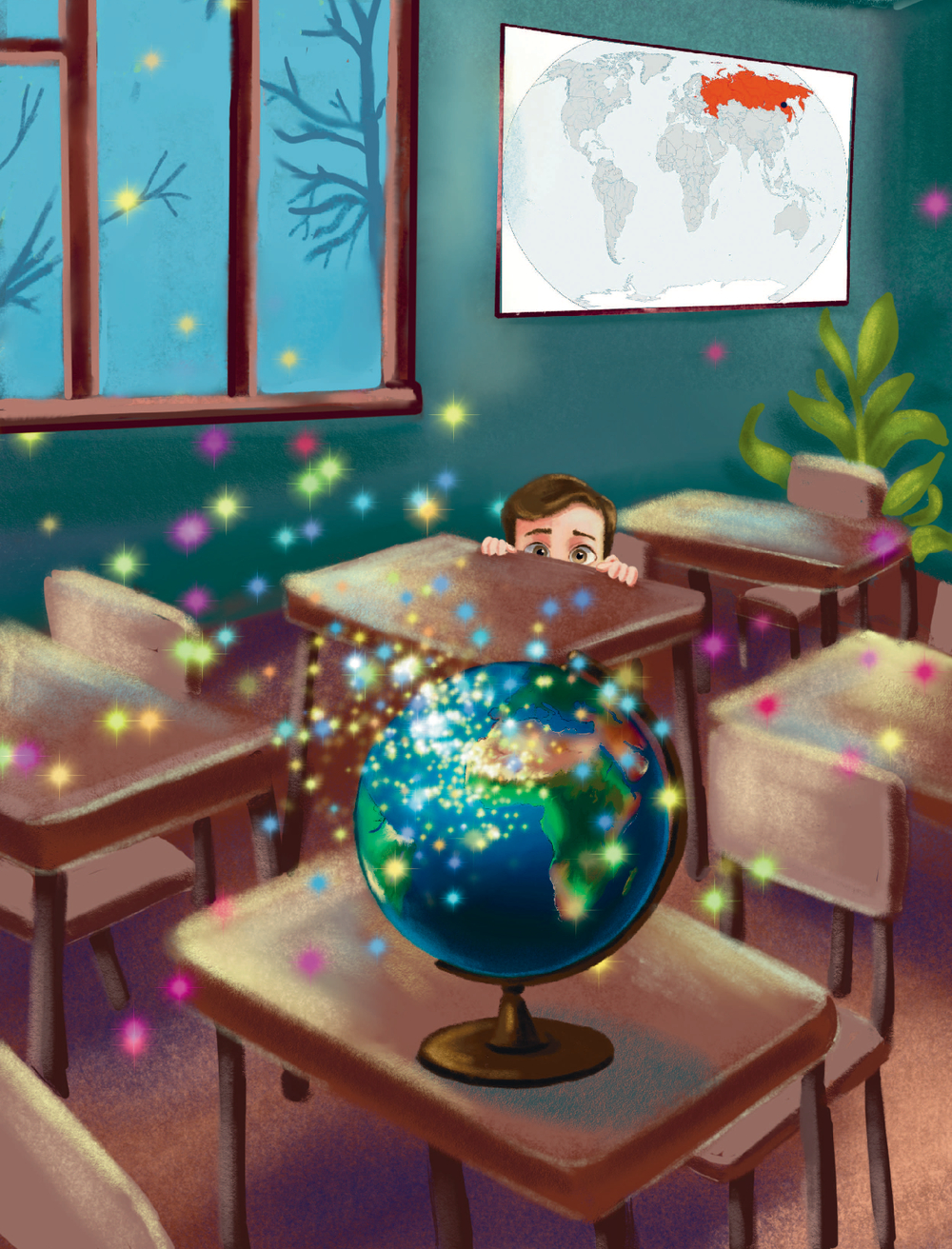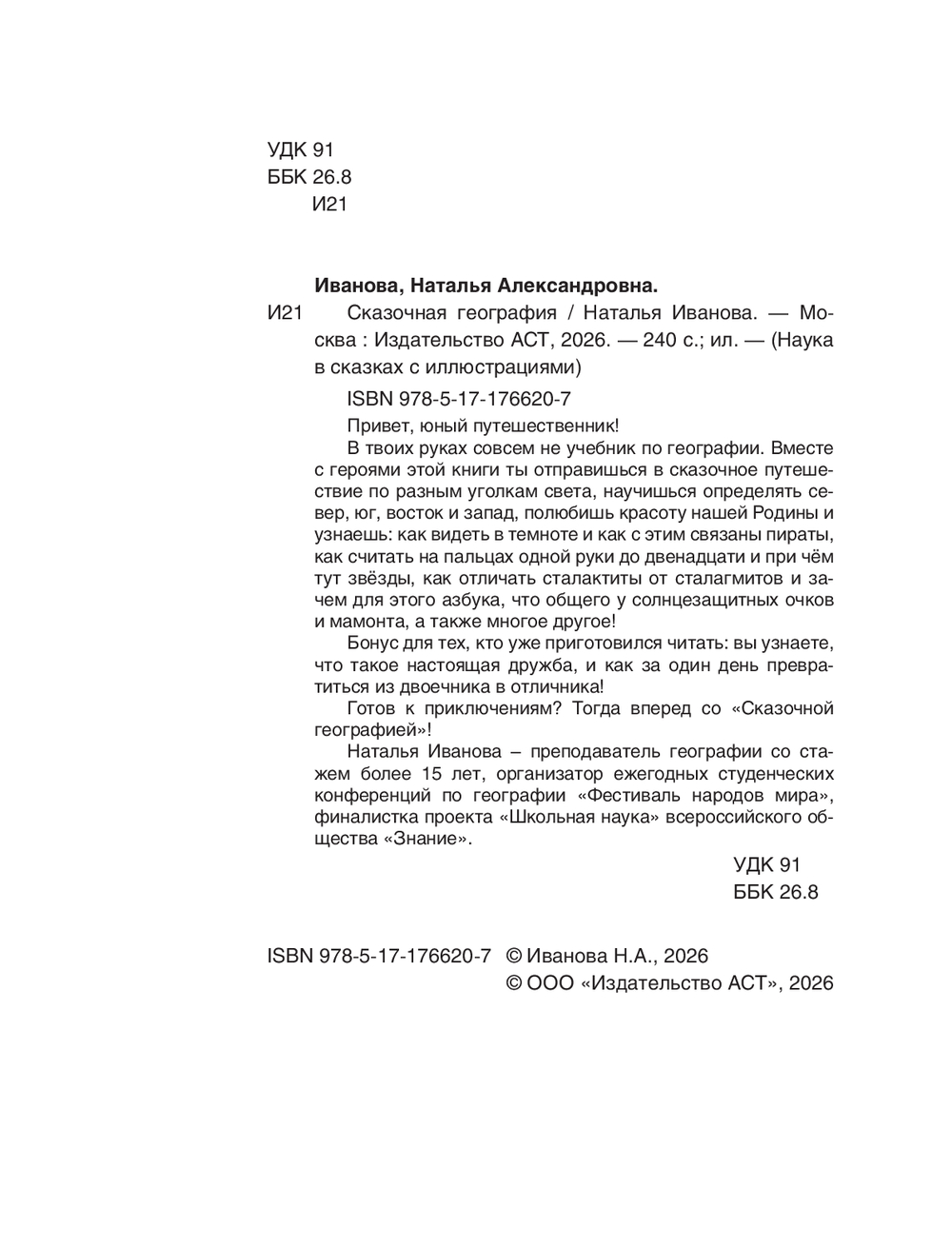 В твоих руках совсем не учебник по географии. Вместе с героями этой книги ты отправишься в сказочное путешествие по разным уголкам света, научишься определять север, юг, восток и запад, полюбишь красоту нашей Родины и узнаешь: как видеть в темноте и как с этим связаны пираты, как считать на пальцах одной руки до двенадцати и при чём тут звёзды, как отличать сталактиты от сталагмитов и зачем для этого азбука, что общего у солнцезащитных очков и мамонта, а также многое другое!
