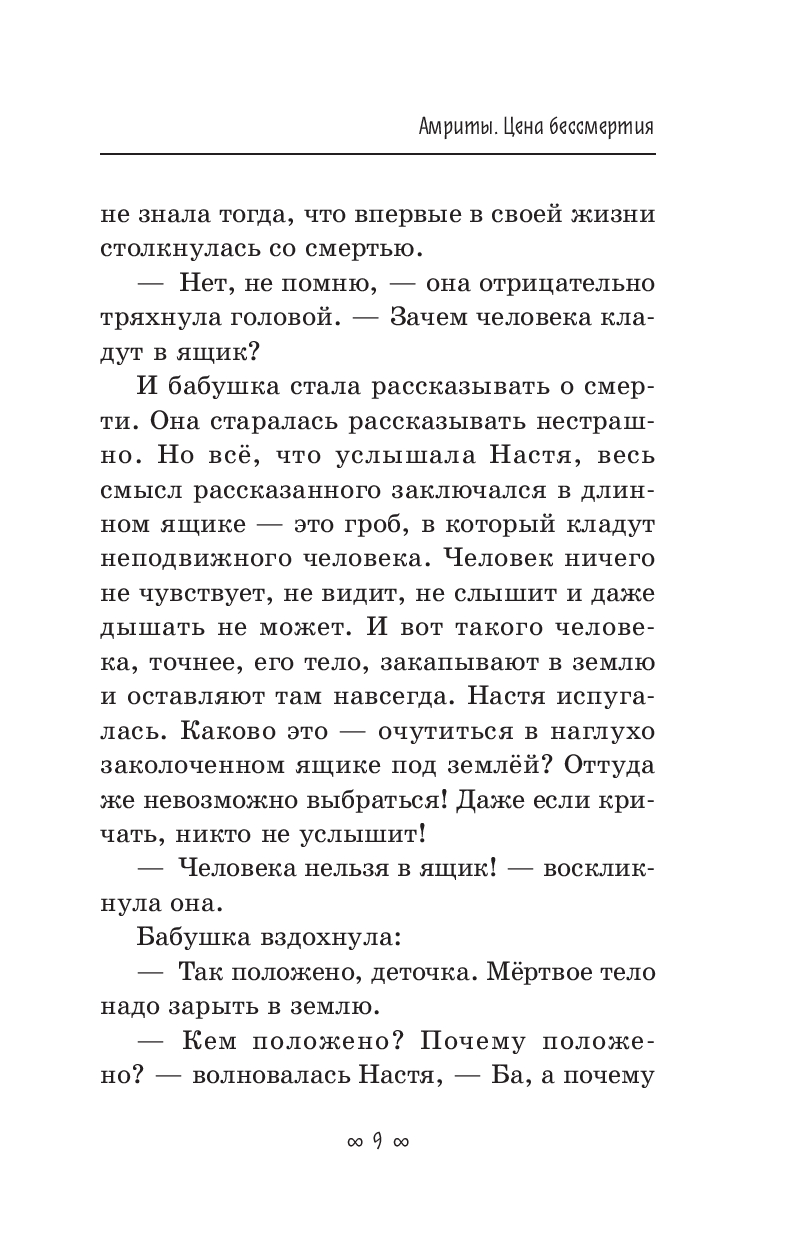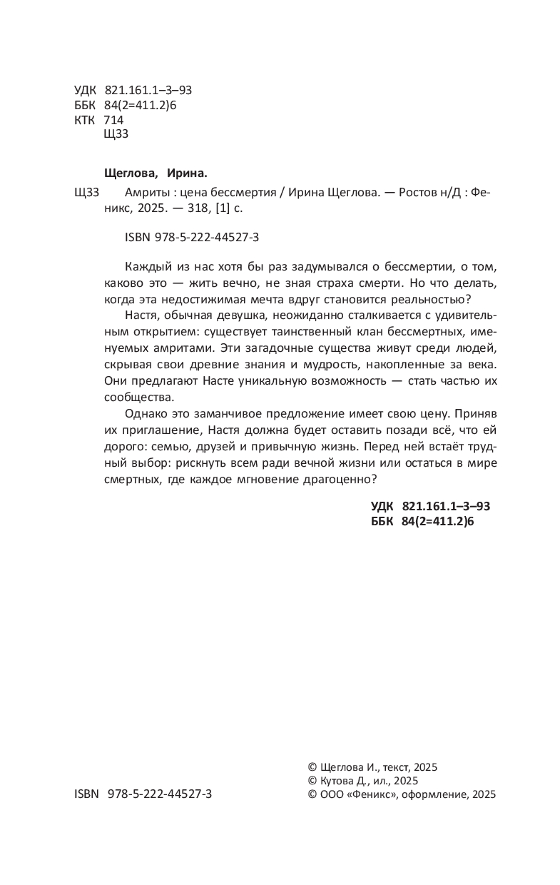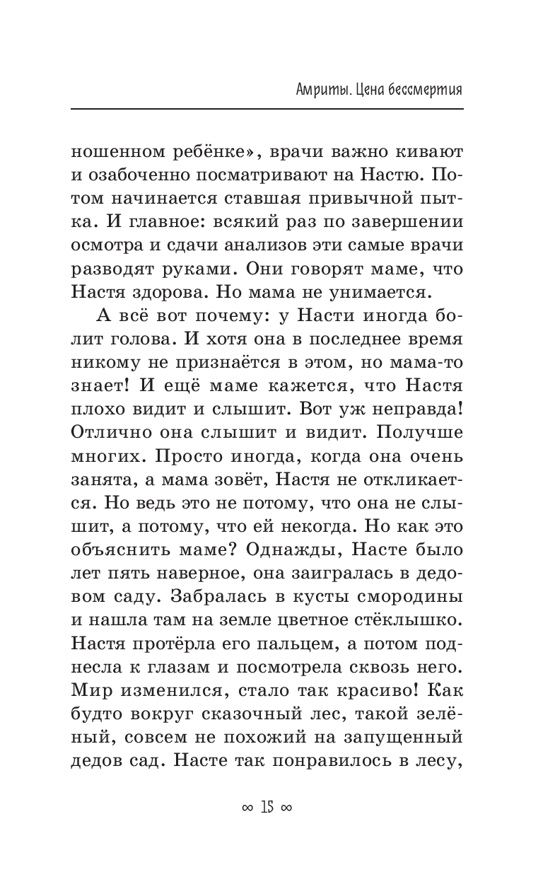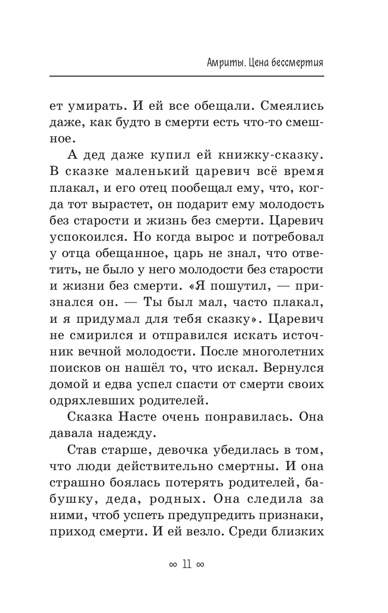 Настя, обычная девушка, неожиданно сталкивается с удивительным открытием: существует таинственный клан бессмертных, именуемых амритами. Эти загадочные существа живут среди людей, скрывая свои древние знания и мудрость, накопленные за века. Они предлагают Насте уникальную возможность – стать частью их сообщества.