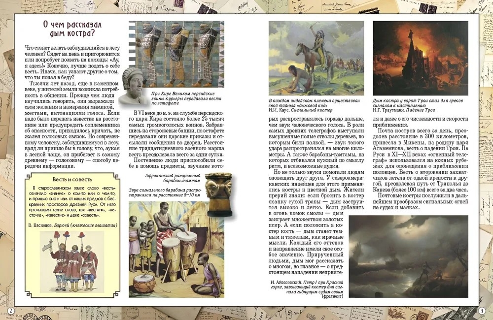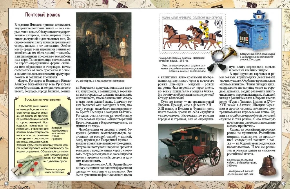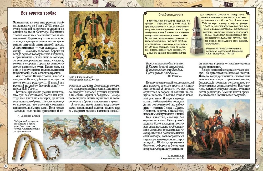 Книга расскажет сегодняшним школьникам, которые родились в эпоху электронной связи, о том, какой долгий путь прошла история почты. А начиналось все с сигнальных костров, "говорящих" писем из ракушек и веревочных узелков, рисунков-пиктограмм, папирусных и пергаментных свитков и берестяных грамот, пеших и конных гонцов, от скорости которых порой зависел исход сражения, лихой ямщицкой тройки и почтовых станций на столбовых дорогах.