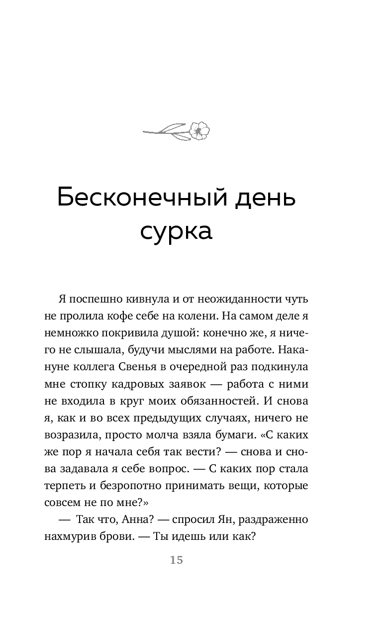 Анна много лет работает в отделе кадров, вечера проводит с любимым мужчиной на диване за просмотром сериалов, старается никому не доставлять неудобств и пореже встречаться со свекровью.