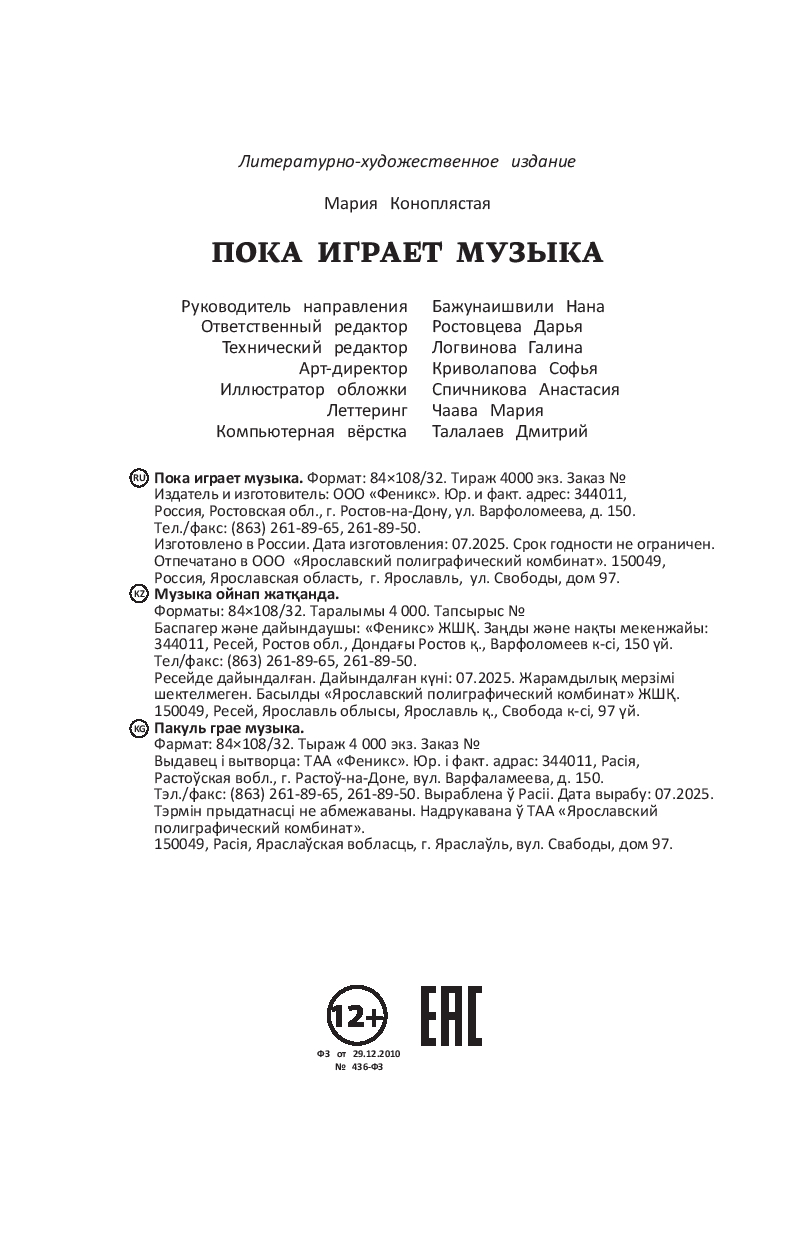 | Изготовитель | ЗАО "Издательство "Феникс". 190000, РФ, г. Санкт-Петербург, пер. Антоненко, 2 |