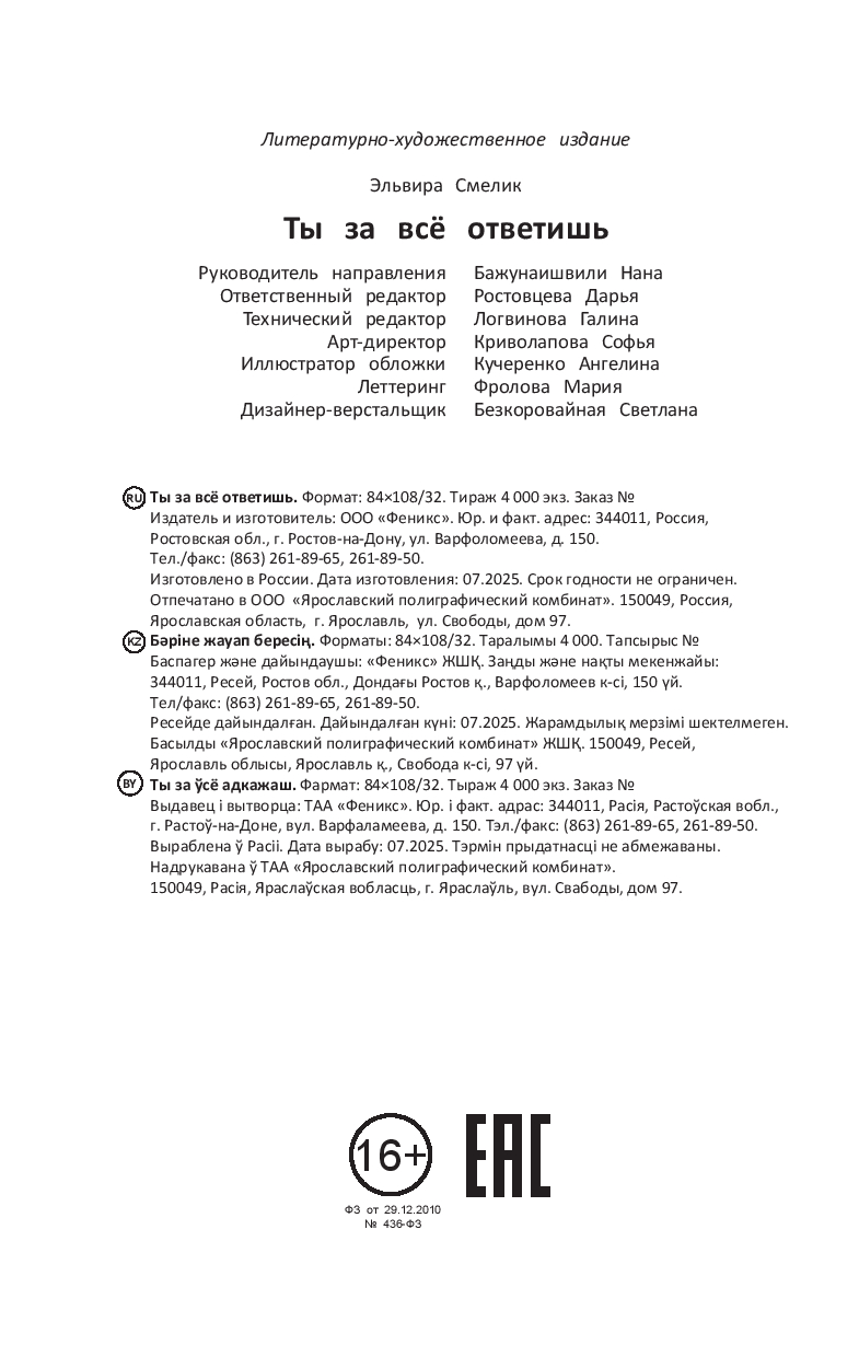 | Изготовитель | ЗАО "Издательство "Феникс". 190000, РФ, г. Санкт-Петербург, пер. Антоненко, 2 |
