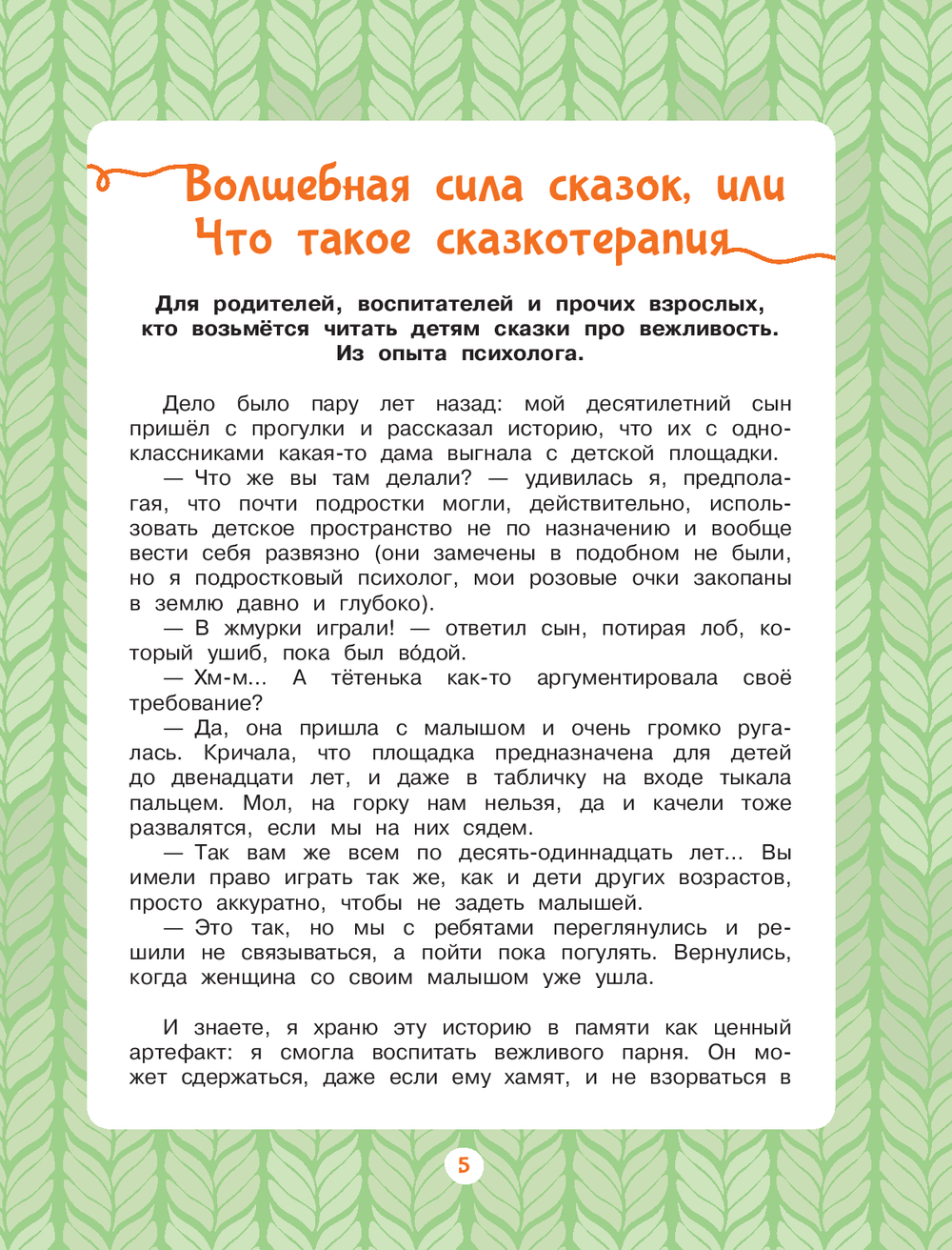 Подсказки и вопросы опытного психолога Лёли Тарасевич решат многие воспитательные задачи. Творческие упражнения в конце книги подарят вам часы уютного семейного досуга, помогут снизить тревожность и поспособствуют формированию интереса к книге и чтению.