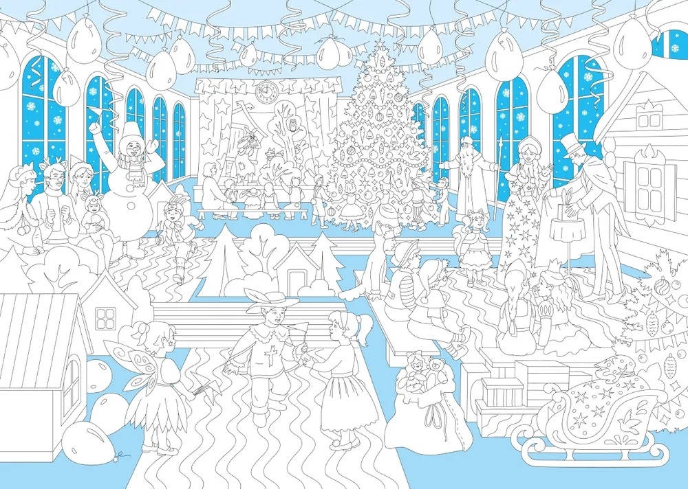 Добро пожаловать в волшебный зимний карнавал! Перед вами – большая раскраска-плакат (42x59 см), которая превратит зимние дни в праздник творчества и станет ярким украшением вашего дома. Создавайте праздник вместе!