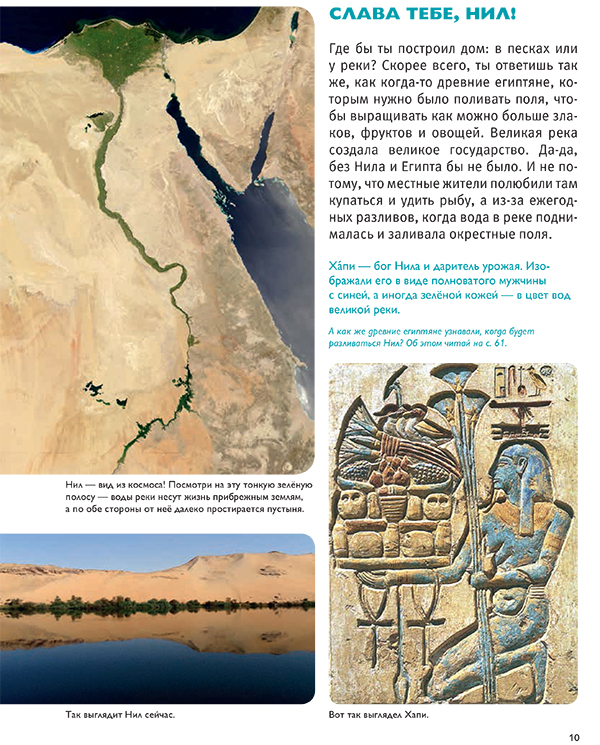 А хочешь оказаться в Древнем Египте? Его цивилизация просуществовала более 40 столетий и оставила огромное наследие. Учёные смогли расшифровать египетские иероглифы и узнать, как строились гигантские пирамиды. Никаких верблюдов, представь, в Древнем Египте ещё не было. И если бы ты жил в Древнем Египте, под властью фараона, ты бы учился в "доме жизни", носил парик, писал тростниковым пером на папирусе, играл бы в сенет, а не в домино, и ел бы руками!