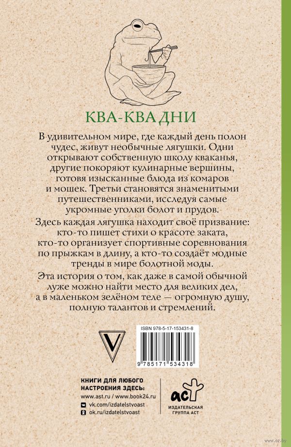 Эта история о том, как даже в самой обычной луже можно найти место для великих дел, а в маленьком зелёном теле – огромную душу, полную талантов и стремлений.