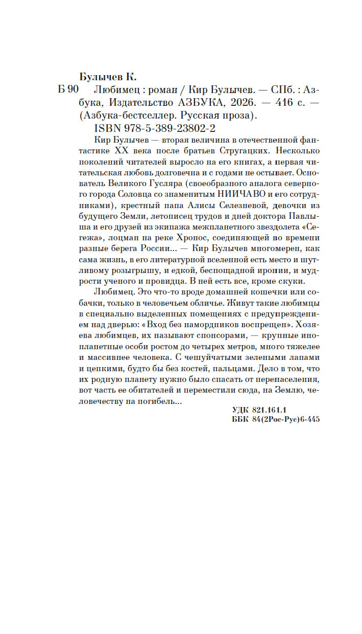 Кир Булычев – вторая величина в отечественной фантастике XX века после братьев Стругацких. Несколько поколений читателей выросло на его книгах, а первая читательская любовь долговечна и с годами не остывает. Основатель Великого Гусляра (своеобразного аналога северного города Соловца со знаменитым НИИЧАВО и его сотрудниками), крестный папа Алисы Селезневой, девочки из будущего Земли, летописец трудов и дней доктора Павлыша и его друзей из экипажа межпланетного звездолета "Сегежа", лоцман на реке Хронос, соединяющей во времени разные берега России… – Кир Булычев многомерен, как сама жизнь, в его литературной вселенной есть место и шутливому розыгрышу, и едкой, беспощадной иронии, и мудрости ученого и провидца. В ней есть все, кроме скуки.