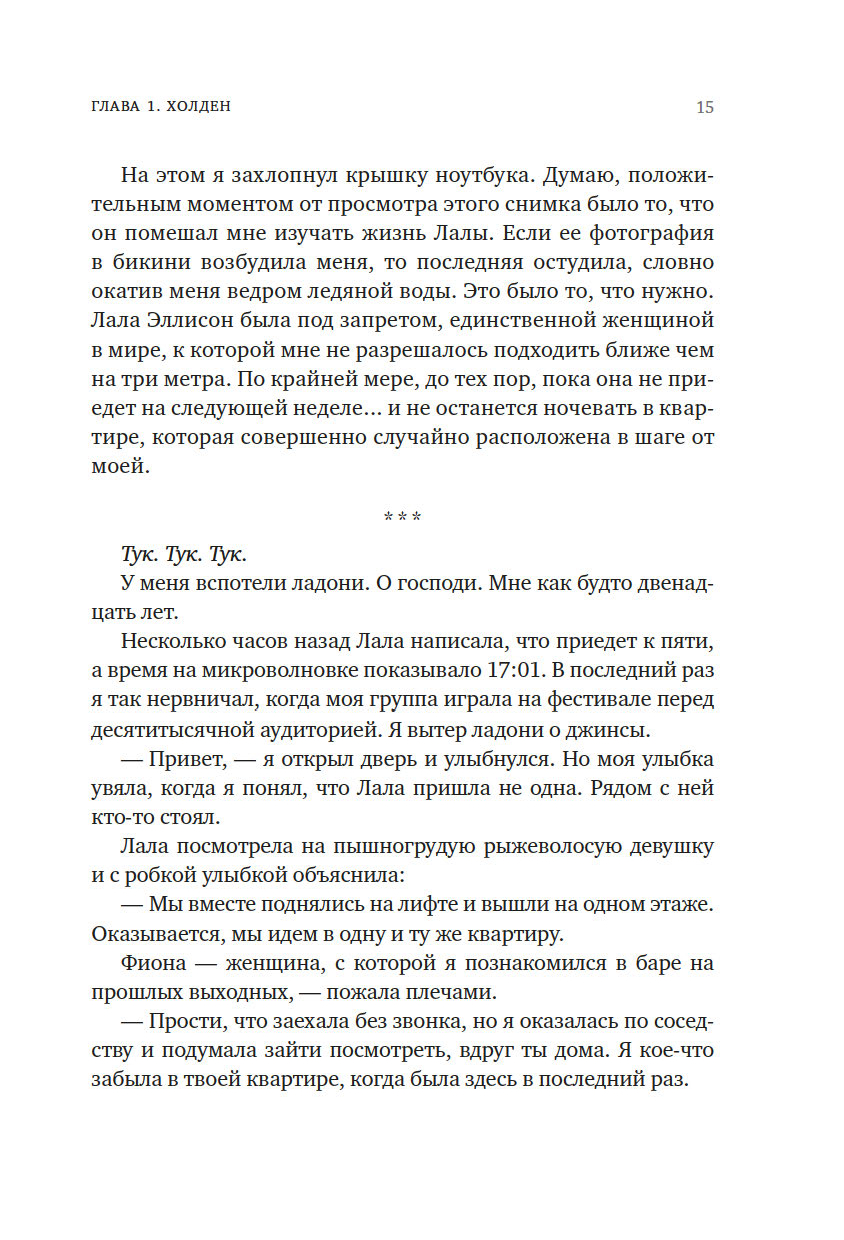 Но вот Лале предлагают грант на исследование в Нью-Йорке, и на ближайшие несколько месяцев они станут соседями в многоквартирном доме, оказавшись в опасной близости друг от друга. Холден прилагает все усилия к тому, чтобы играть по правилам, но каждый день чувствует в ее словах, взгляде что-то такое, от чего вскипает кровь. Но что это? Всего лишь желание? Или же все серьезнее?