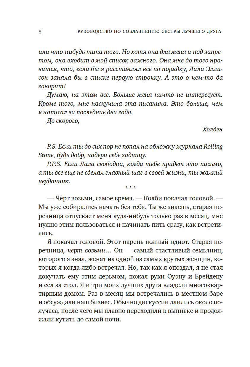 Первое, о чем стоит вспомнить Холдену, когда он впервые задумывается соблазнить младшую сестру своего приятеля: этого делать не надо. Серьезно. Во-первых, таковы уж правила. А во-вторых, Холден давал обещание присматривать за ней, а сам он уж явно неподходящая для нее партия – мало того, что бабник, так еще и музыкант с неясными перспективами. А Лала самая настоящая умница: добрая, понимающая, талантливый ученый – неудивительно, что у нее уже есть жених. Так что руки прочь.