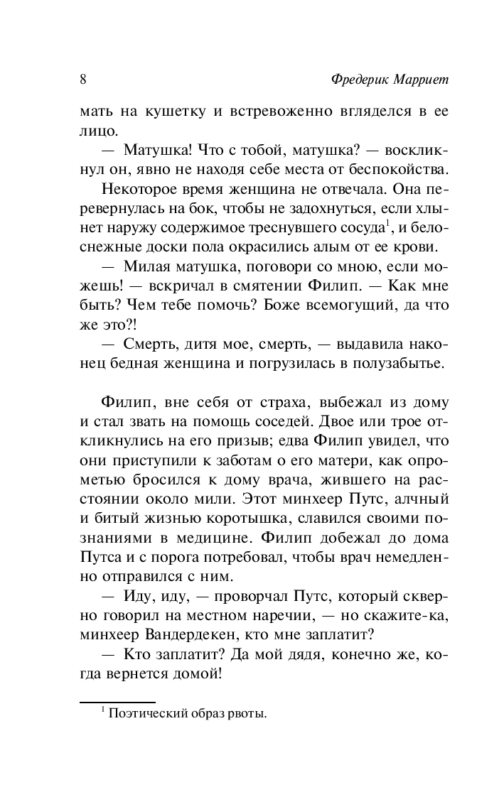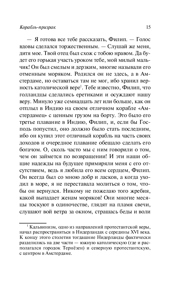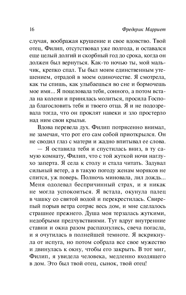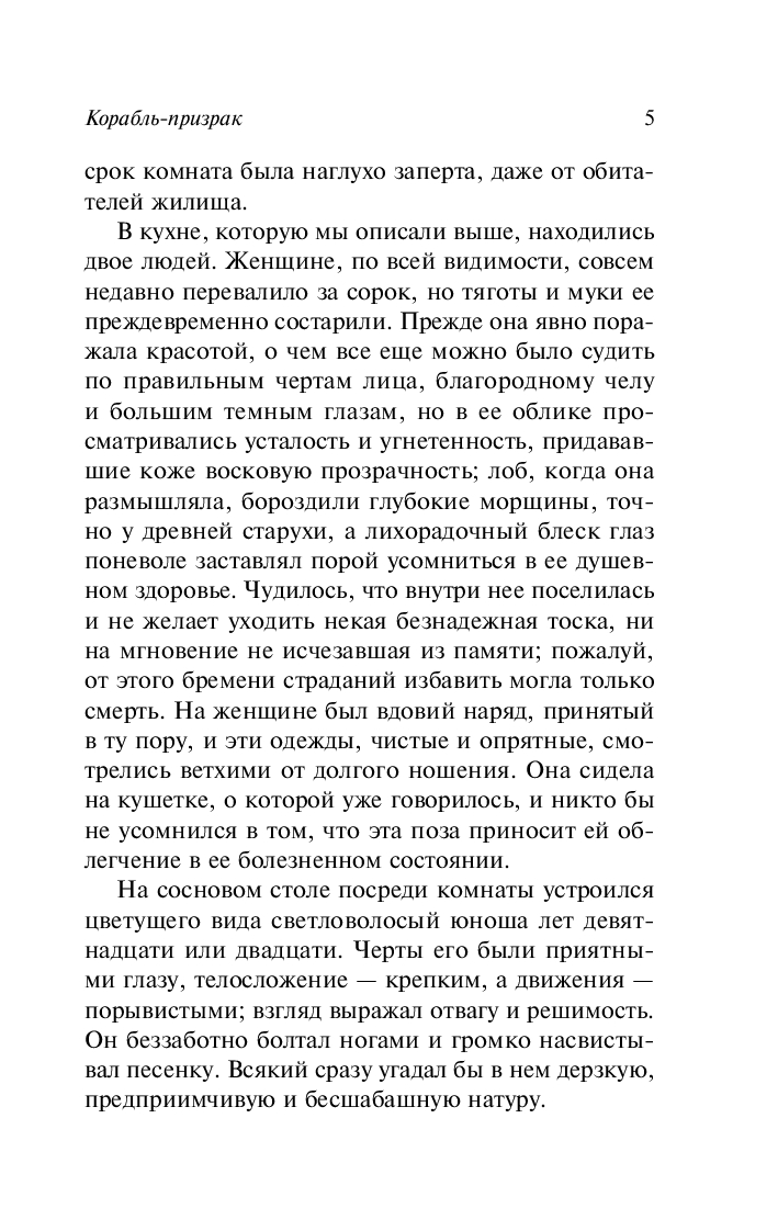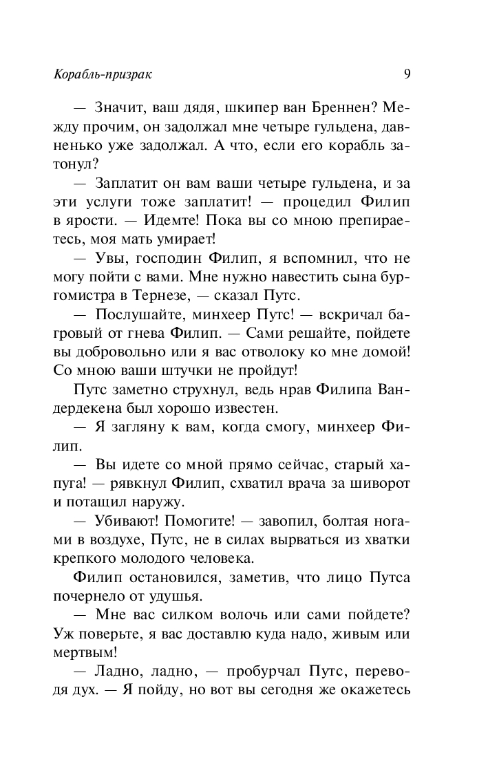 Корабль-призрак – роман, в основе которого – легенда о "Летучем голландце", корабле-призраке, вечно скитающемся по морям и океанам, наводя ужас на мореплавателей. Молодой человек Филип Вандердекен должен снять проклятие со своего отца-капитана, наказанного за богохульство и убийство одного из членов экипажа…