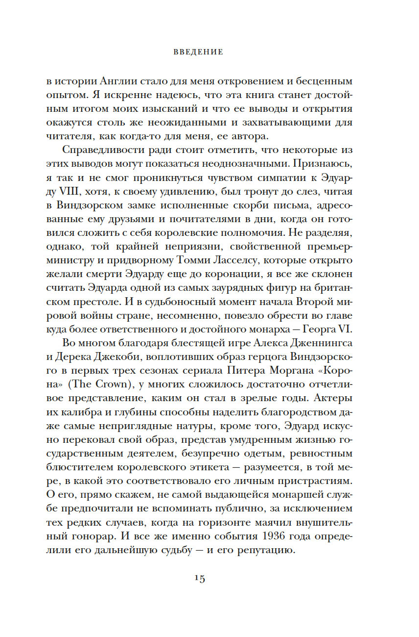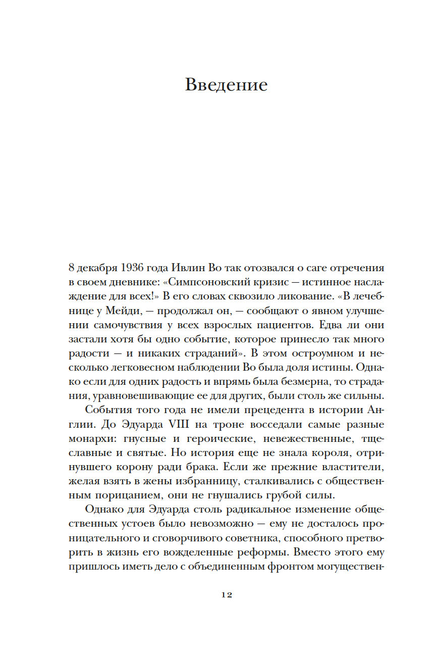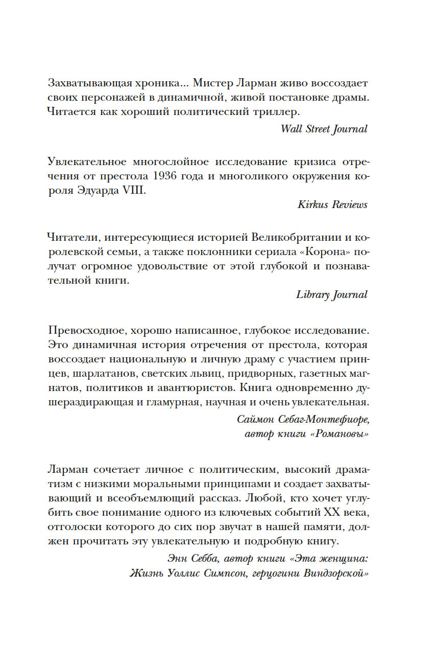 "До Эдуарда VIII на троне восседали самые разные монархи: гнусные и героические, невежественные, тщеславные и святые. Но история еще не знала короля, отринувшего корону ради брака" (Александр Ларман).