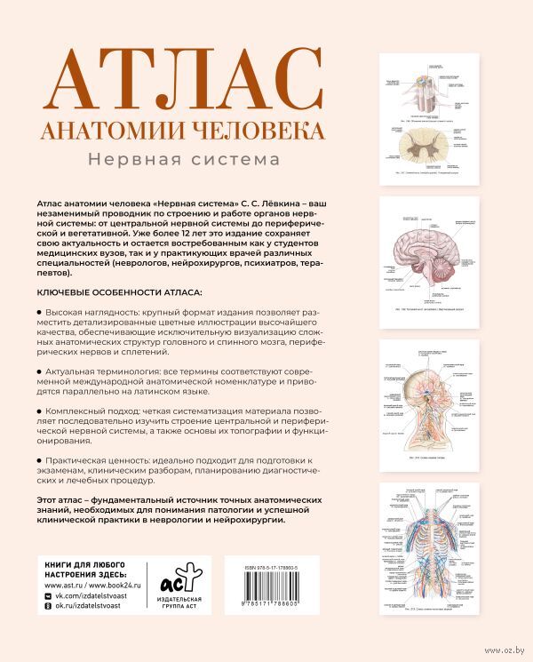 Атлас анатомии человека "Нервная система" С. С. Лёвкина – ваш незаменимый проводник по строению и работе центрального и периферического отдела нервной системы. Уже более 12 лет это издание сохраняет свою актуальность и остается востребованным как у студентов медицинских вузов, так и у практикующих врачей различных специальностей (неврологов, нейрохирургов, психиатров, терапевтов).