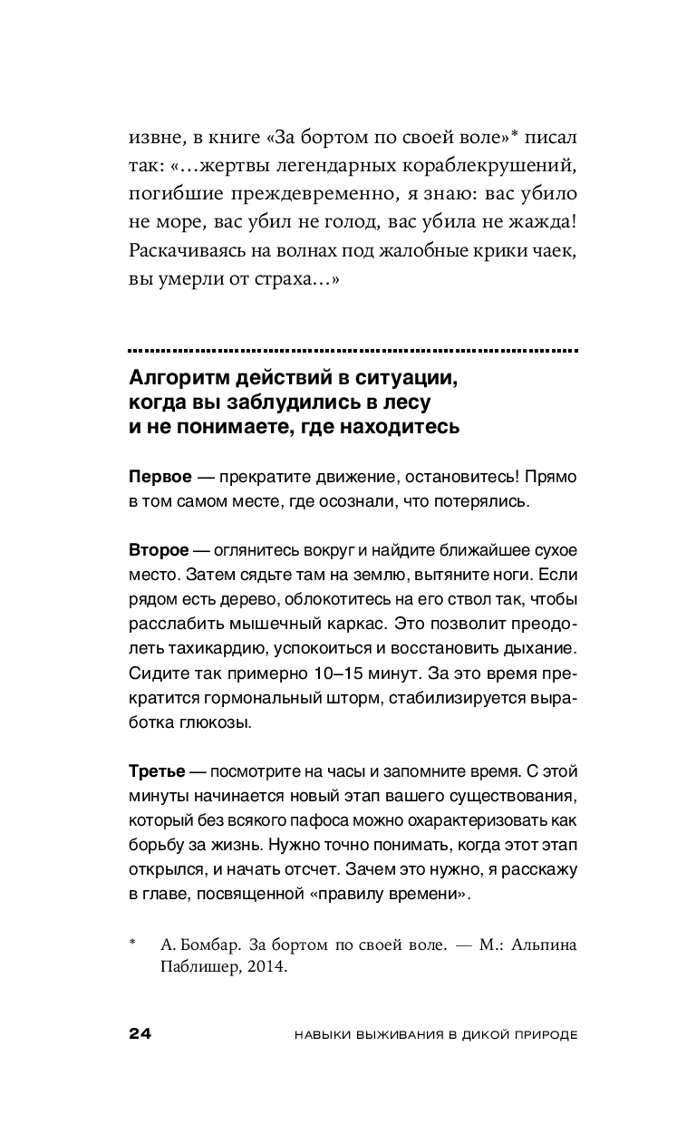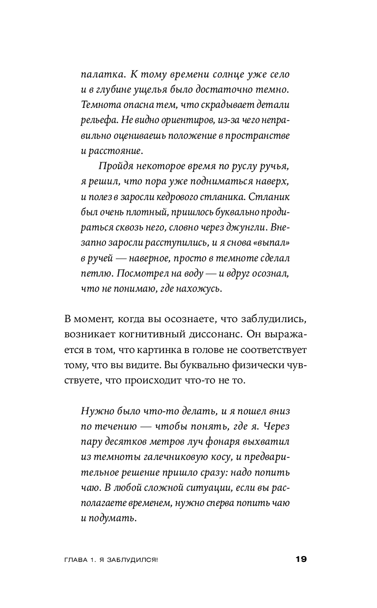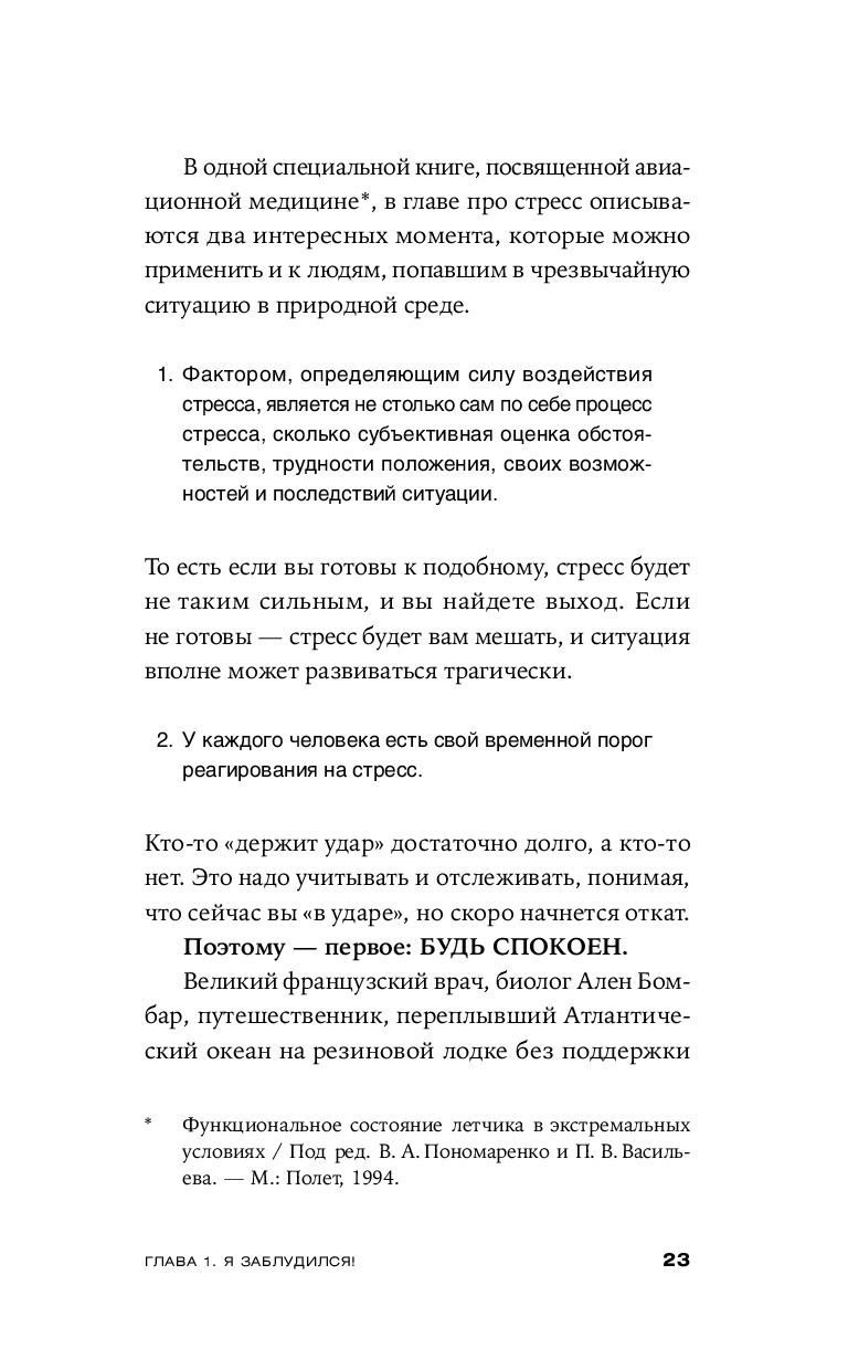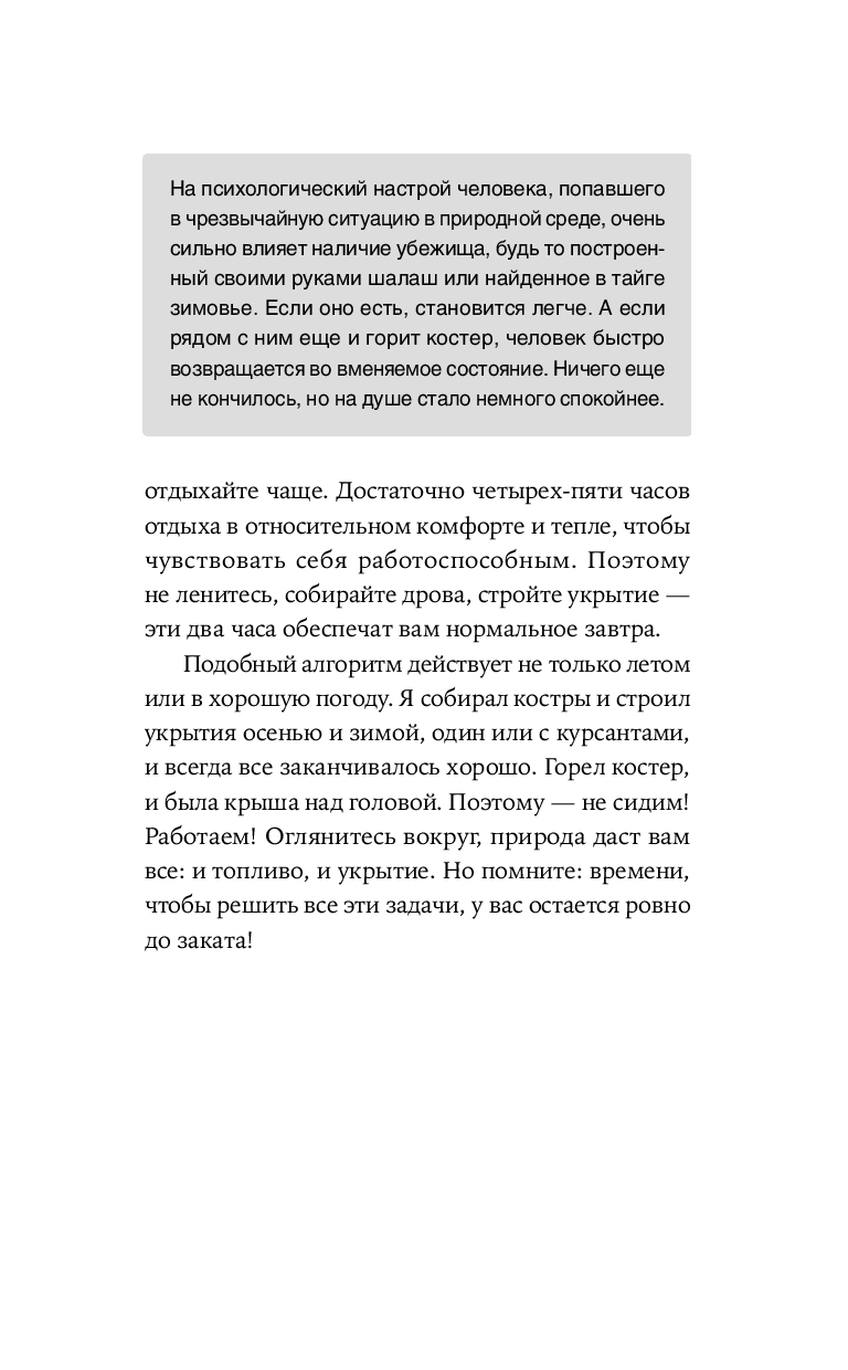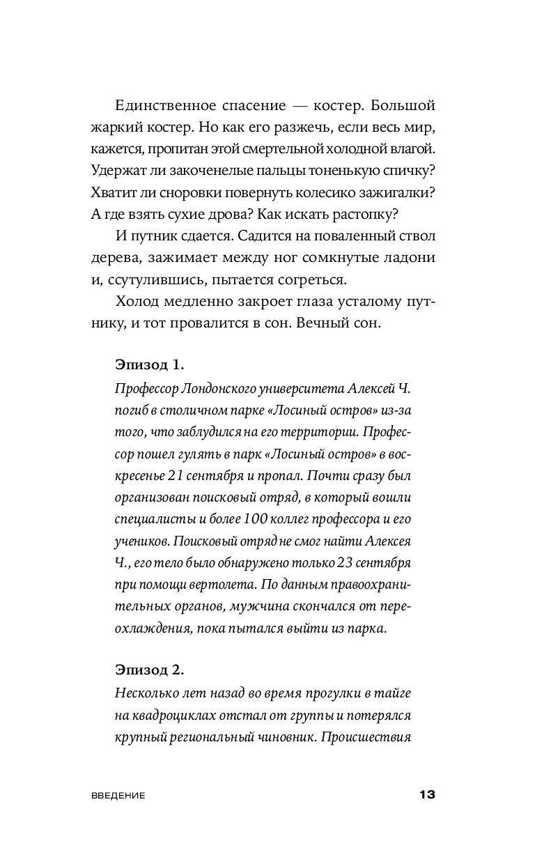 Эта книга научит вас главному: как сохранить физическое и психическое здоровье в экстремальной ситуации до прибытия помощи. Здесь собраны базовые алгоритмы — контроль состояния, жизнеобеспечение, сигналы — и реальные истории, показывающие, какие ошибки совершают люди в тайге, лесу и горах. Это действенное практическое руководство для каждого, кто хочет быть готовым к чрезвычайным обстоятельствам.
