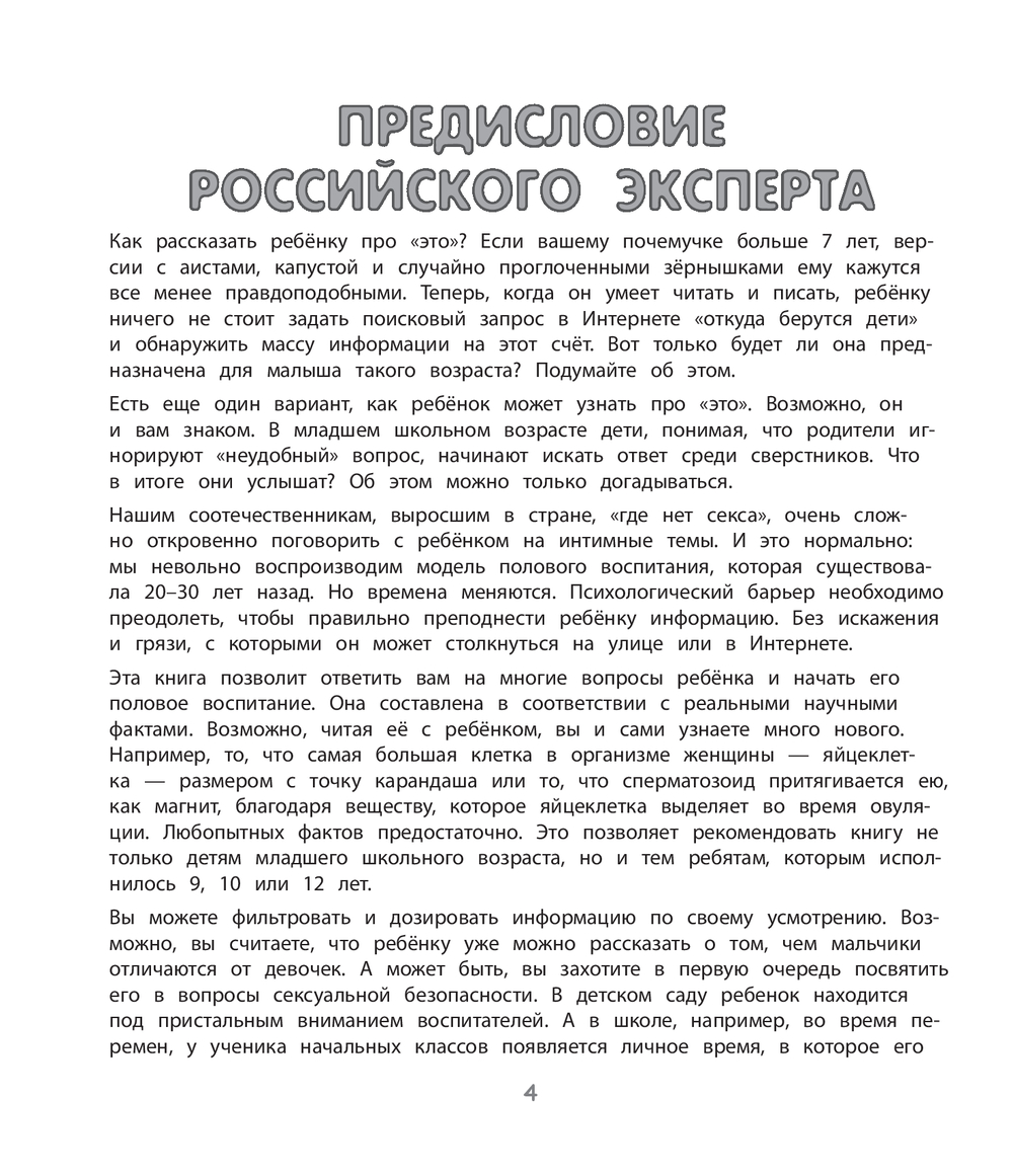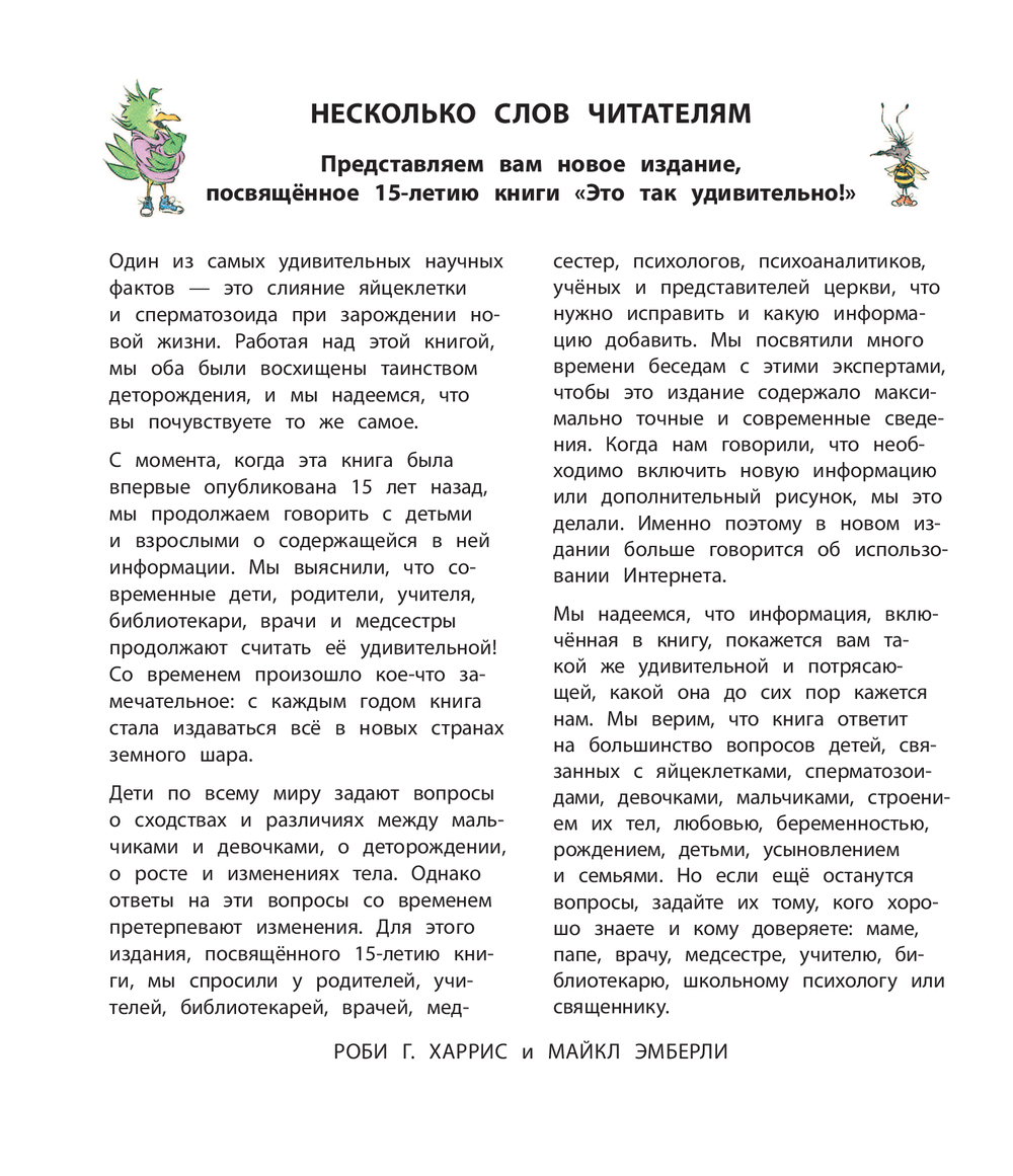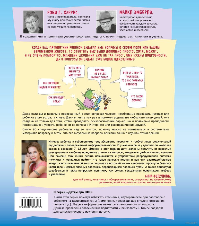 Цель этой книги – честно и доступно рассказать детям о том, насколько удивительны эти процессы на самом деле. И автору, маме и педагогу, Роби Г. Харрис, удалось вплести в увлекательные истории непростые научные сведения о теле и природе человека. Издание дает ребенку необходимые знания, сохраняя при этом его физическое и эмоциональное здоровье, а также ощущение чуда при зарождении новой жизни.