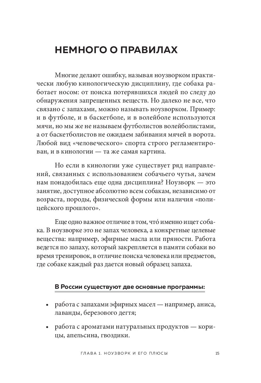 Эта книга – практический гид по нозворку – спорту, в котором собака использует свое обоняние для поиска различных предметов. Понятные пошаговые упражнения, разделенные по уровням от базового до продвинутого, помогут собаке снизить стресс, улучшить ее концентрацию и углубить вашу связь с питомцем. Начать можно дома, без сложного инвентаря, с собаками любой породы и возраста.