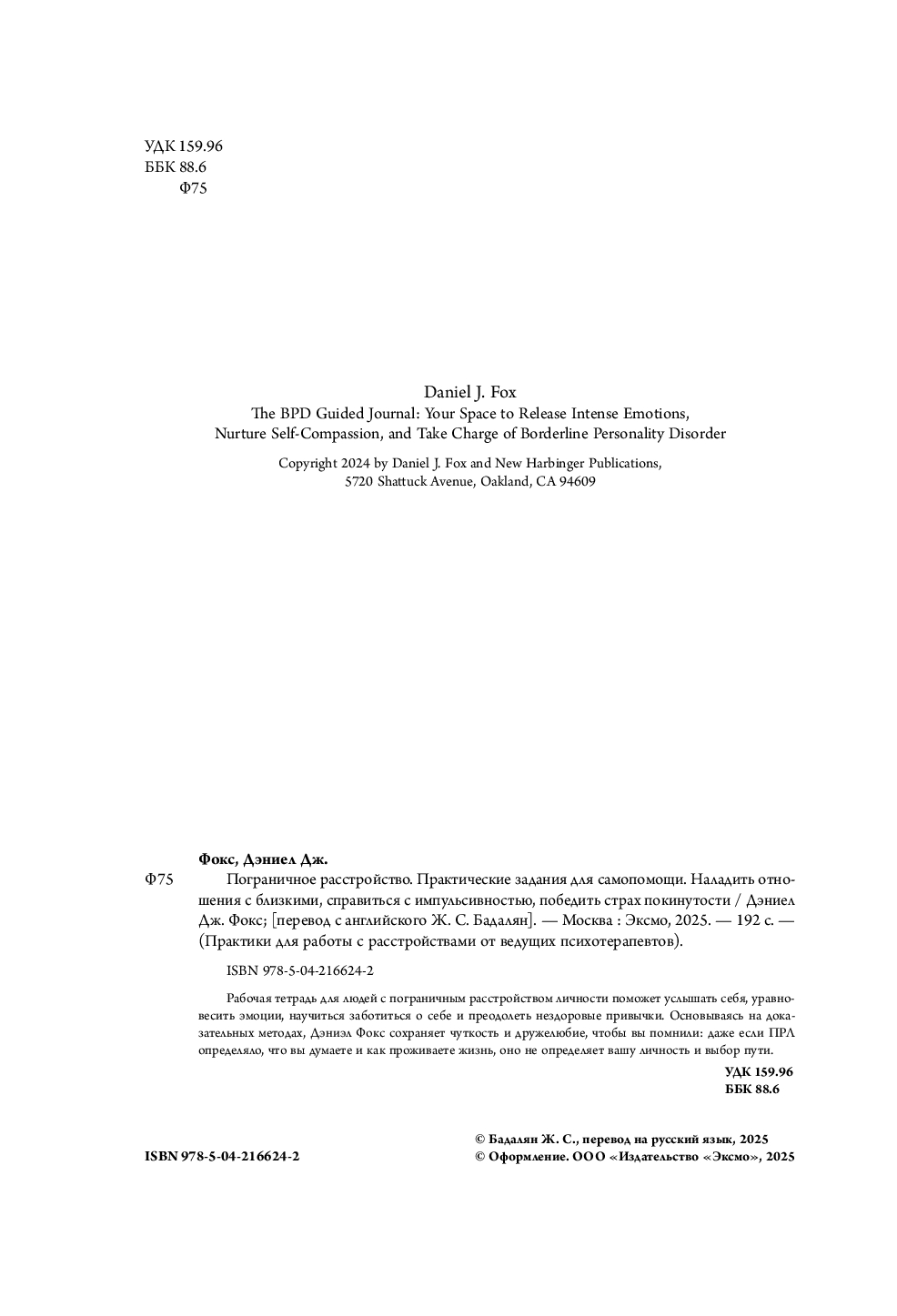 | Название в оригинале | The BPD Guided Journal: Your Space to Release Intense Emotions, Nurture Self-Compassion, and Take Charge of Borderline Personality Disorder |
