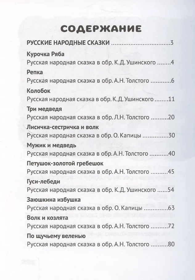 В этой книге собраны самые любимые русские народные и зарубежные сказки. Курочка Ряба, Колобок, Серый волк, Лисичка, Петушок-золотой гребешок, Гуси-лебеди, Красная Шапочка, Кот в сапогах, Дюймовочка и многие другие сказочные персонажи встретятся малышам на её страницах. Они научат детей не расстраиваться по пустякам, быть находчивыми и решительными, покажут как важно ответственно выполнять поручения родителей, отличать добро от зла, не верить незнакомцам и быть осторожными, расскажут о хитрости, честности и жадности.
