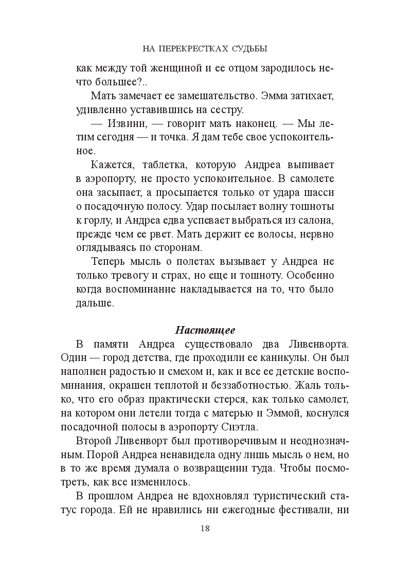 Но свадьба младшей сестры заставляет ее вернуться в Ливенворт – тихий городок, где они с матерью и сестрой когда-то начинали новую жизнь после развода родителей. По стечению обстоятельств ее попутчиком до Ливенворта становится Алекс.