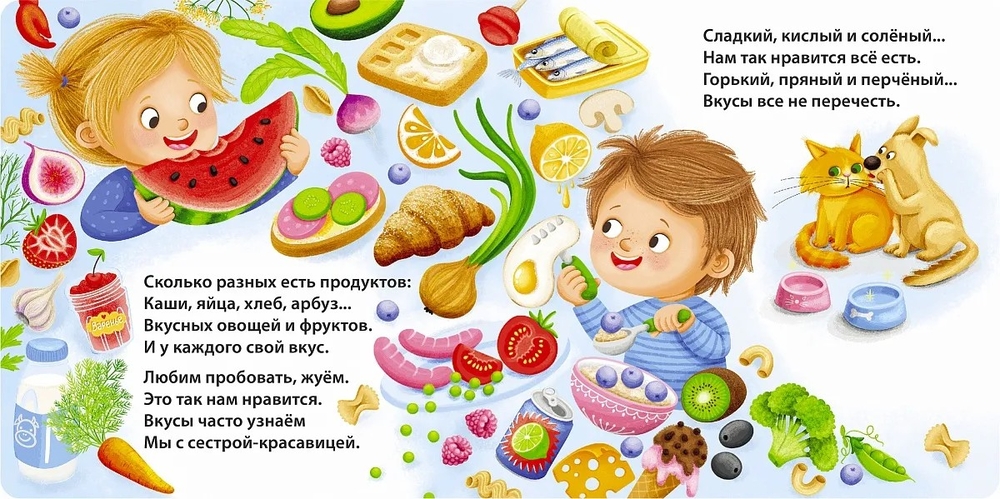 Книжка-картонка "Вкусные истории" Евгения Сосновского познакомит вашего малыша с разнообразием вкусов: сладкий, кислый, солёный, горький, острый, и их особенностями. Весёлые и озорные стихи помогут привить любовь к еде даже тем детям, которые не любят есть.