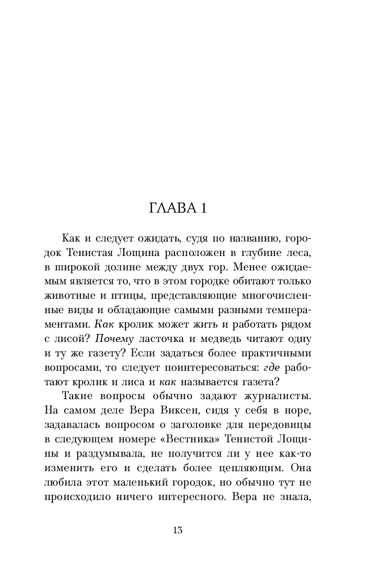 Жизнь в Тенистой Лощине налаживается после ужасных преступлений. Жителям нужны исключительно хорошие новости и, конечно же, сплетни, которые поднимут им настроение. Но шустрая лиса-журналистка Вера Виксен уже соскучилась по сенсационным заголовкам! И нюх подсказывает ей, что скоро обязательно что-то случится. Так и происходит, когда в Холодных Садах кролики натыкаются на зарытые кости…