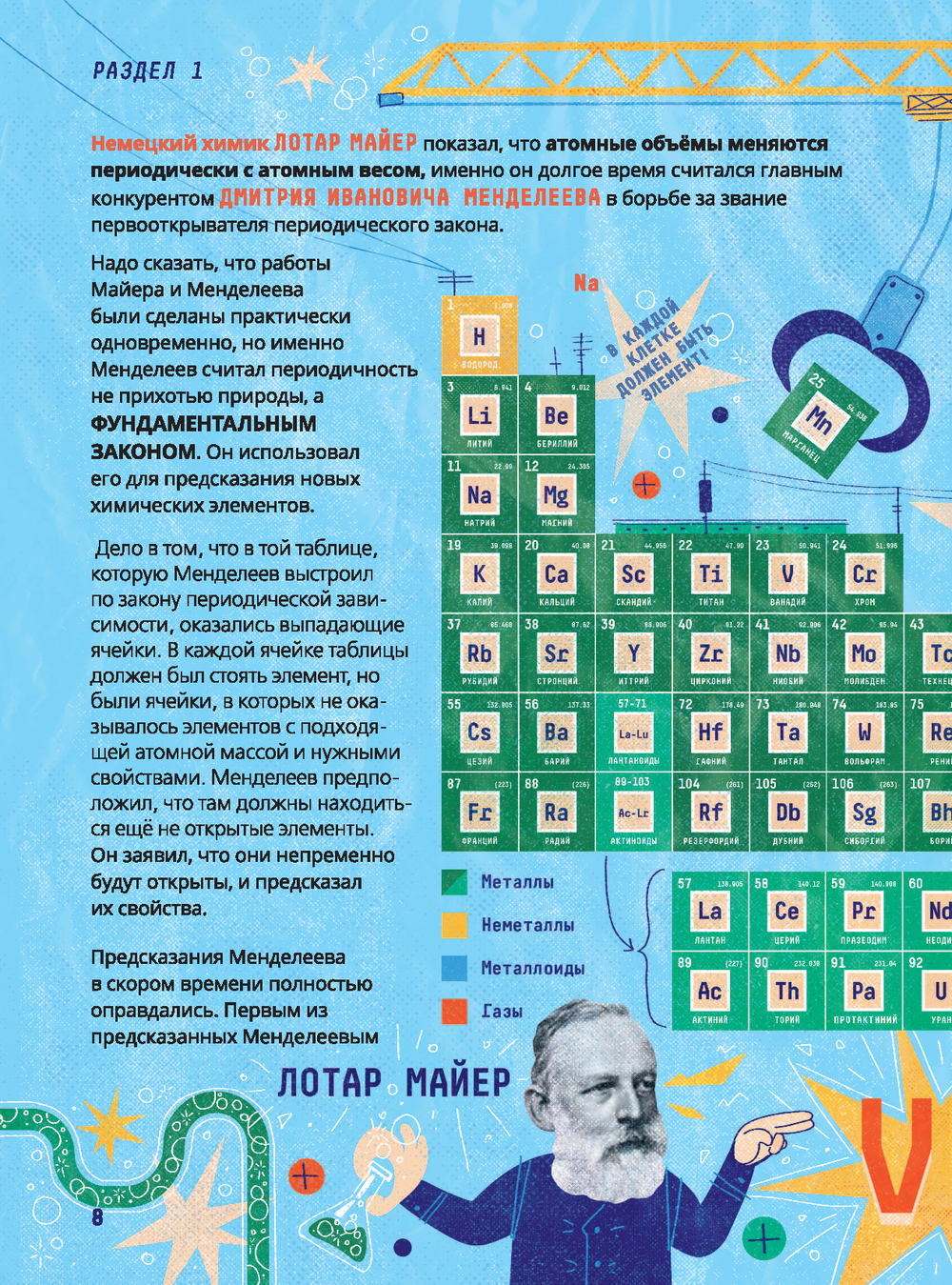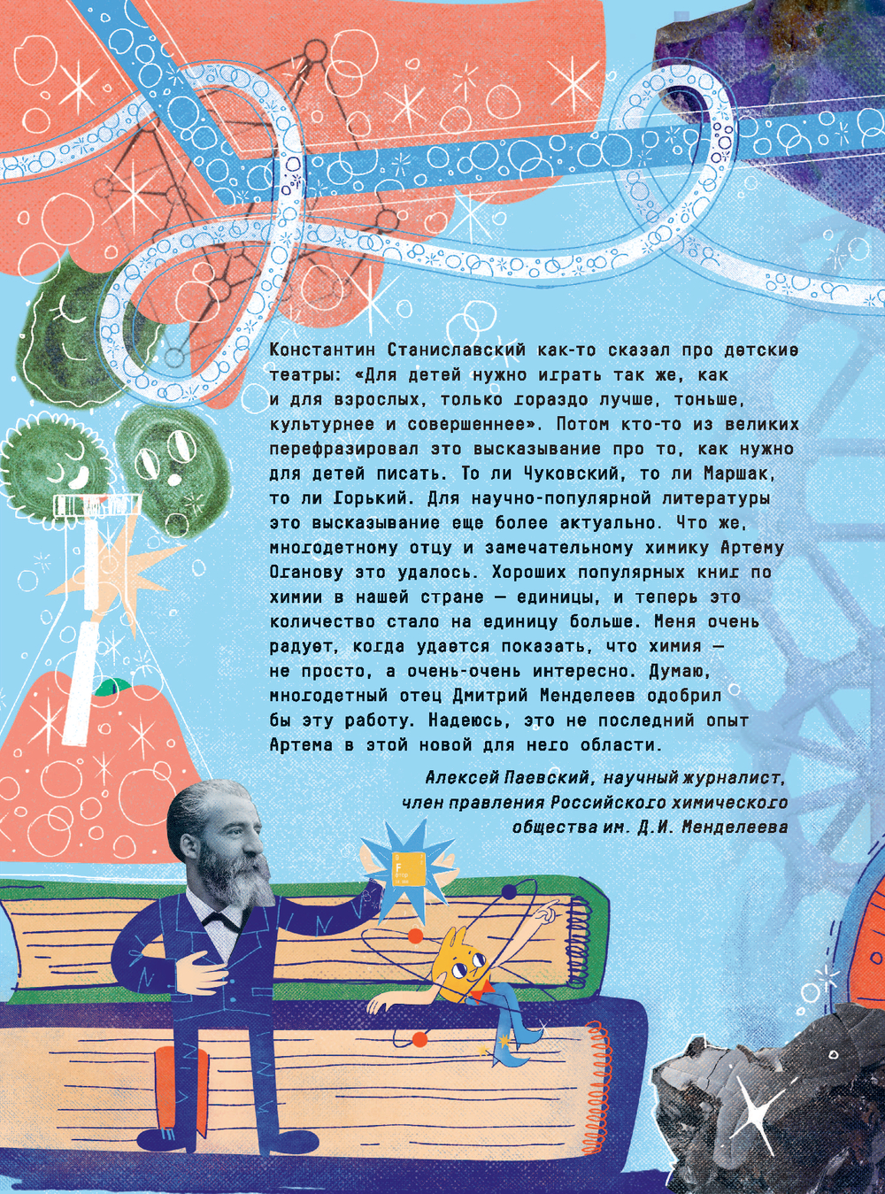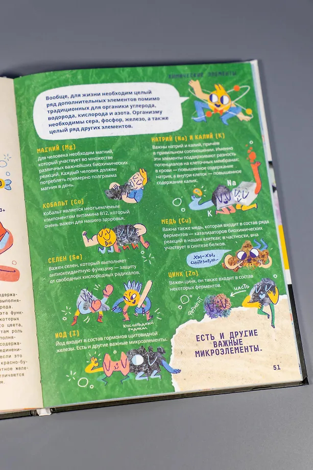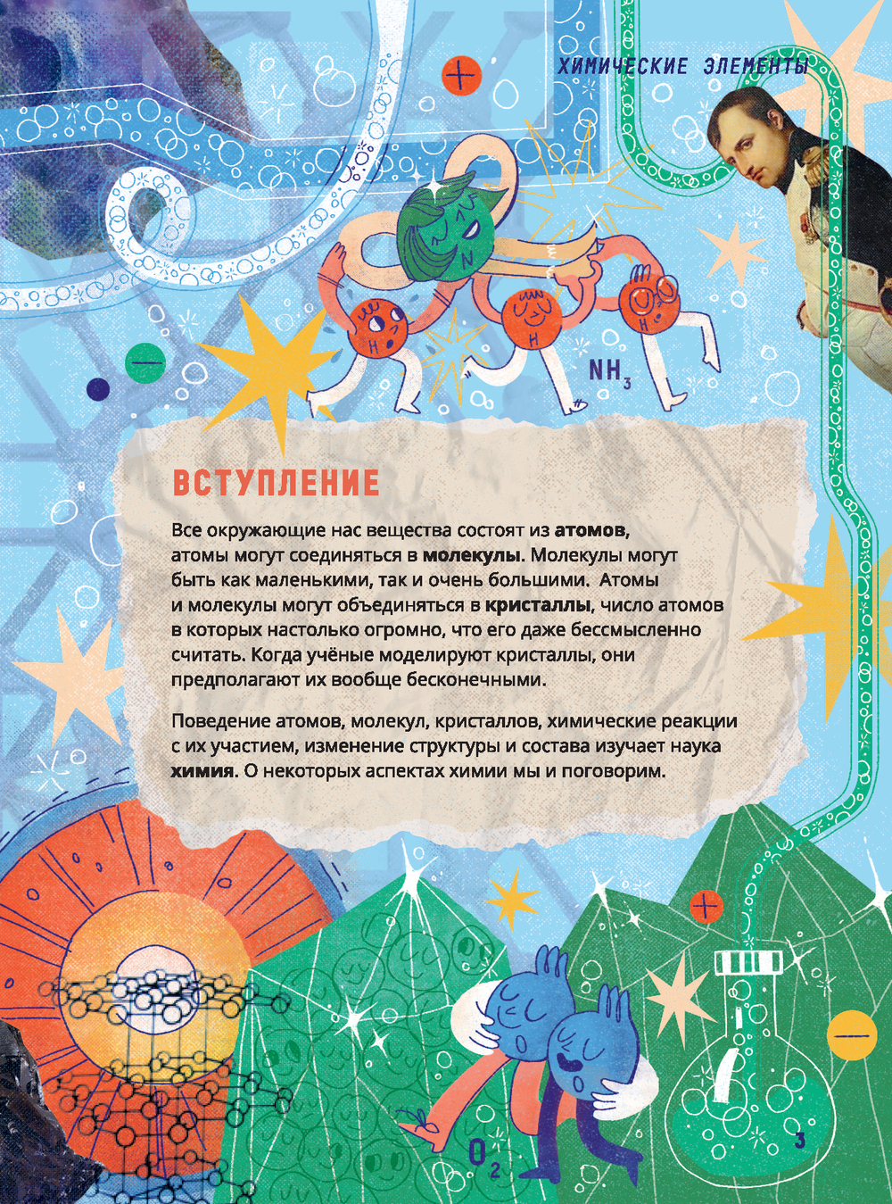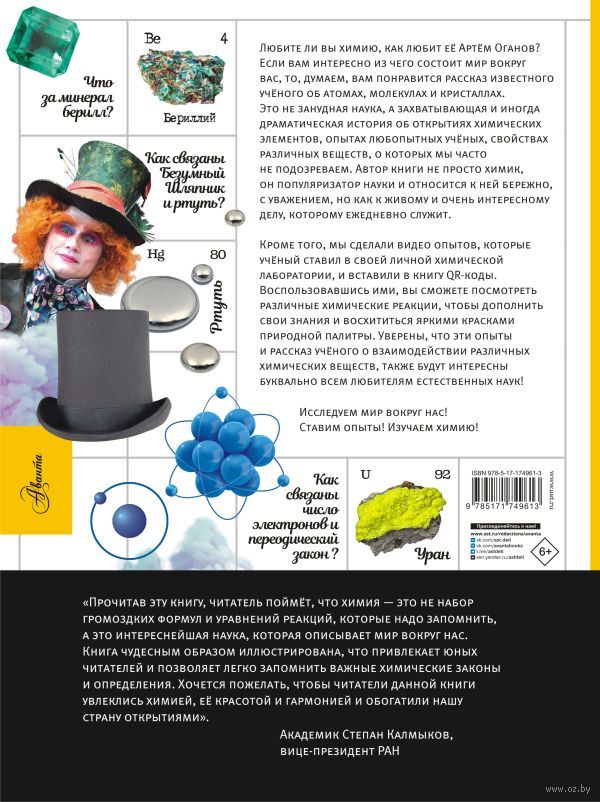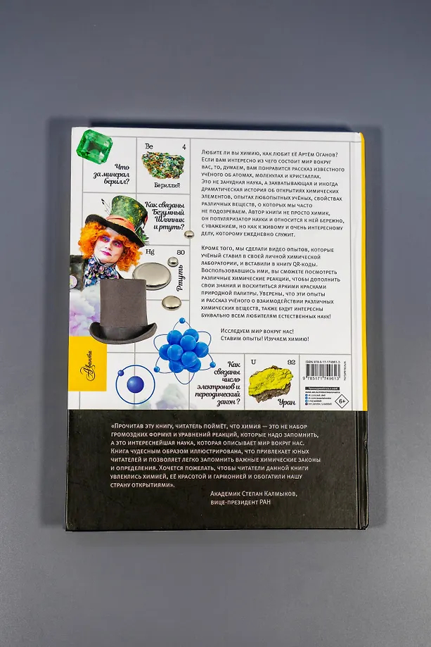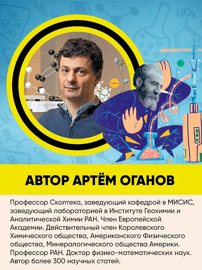 Книга известного учёного Артёма Оганова расскажет школьникам о химических элементах, атомах и молекулах, кристаллах, а яркие запоминающиеся иллюстрации художника Василисы Зинковой дополнят интересный рассказ, заставив подростков улыбнуться. В книгу добавлены QR-коды, с помощью которых можно посмотреть видео химических опытов, поставленных в лаборатории автором.