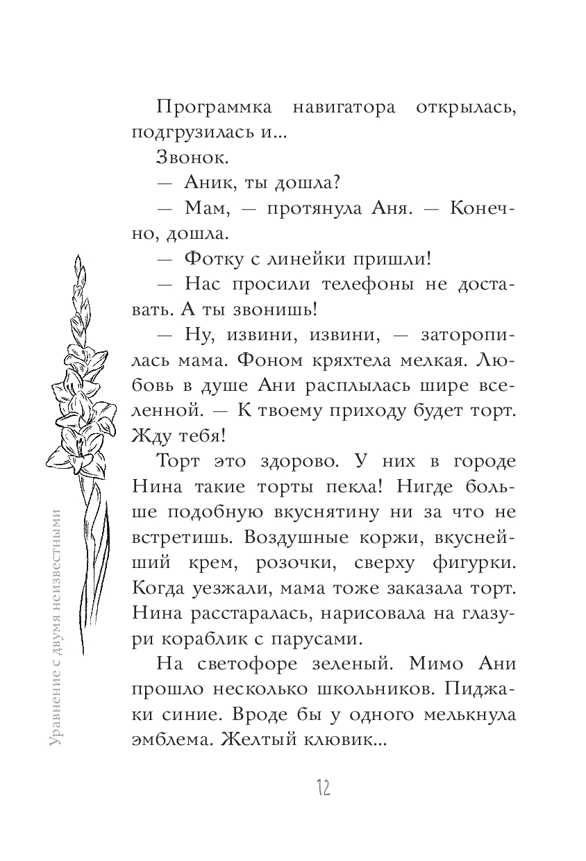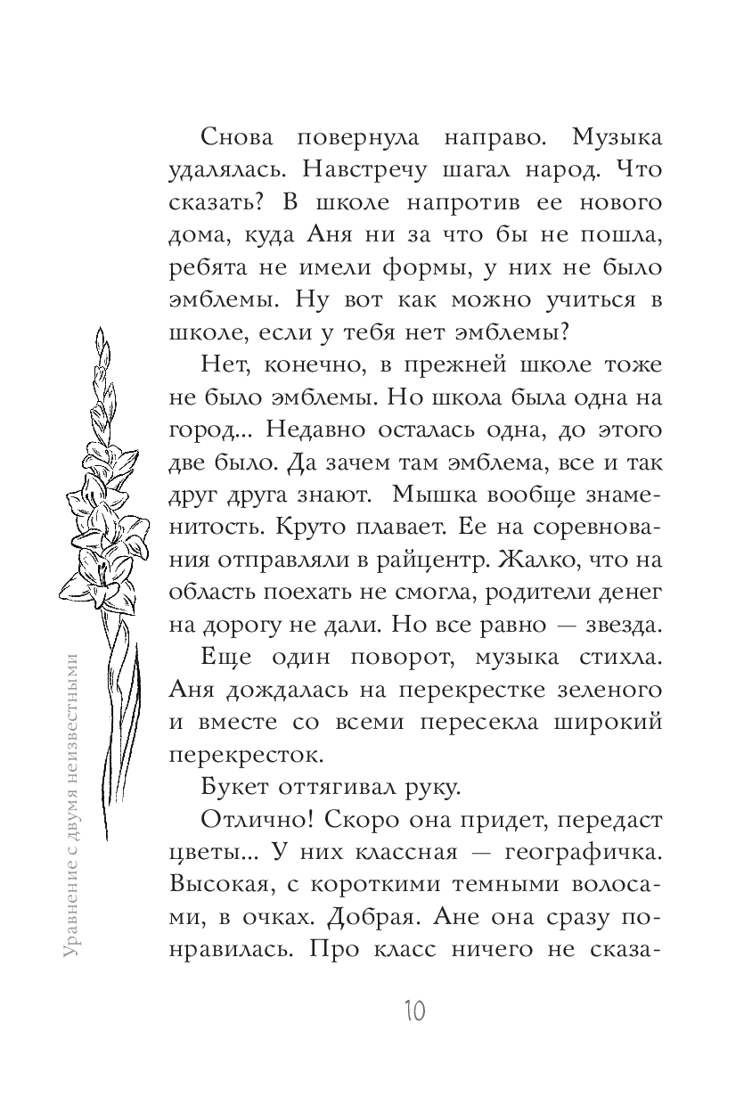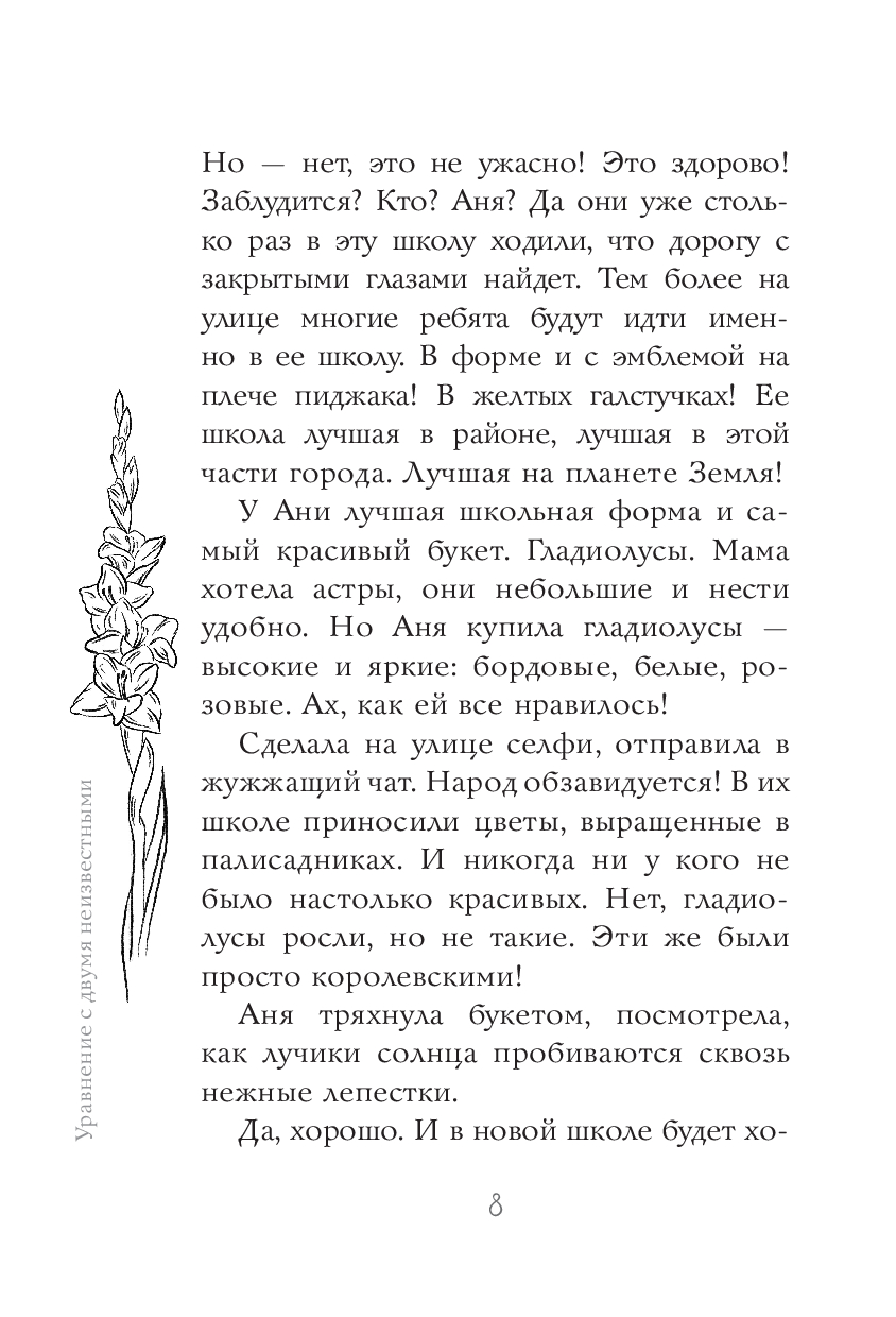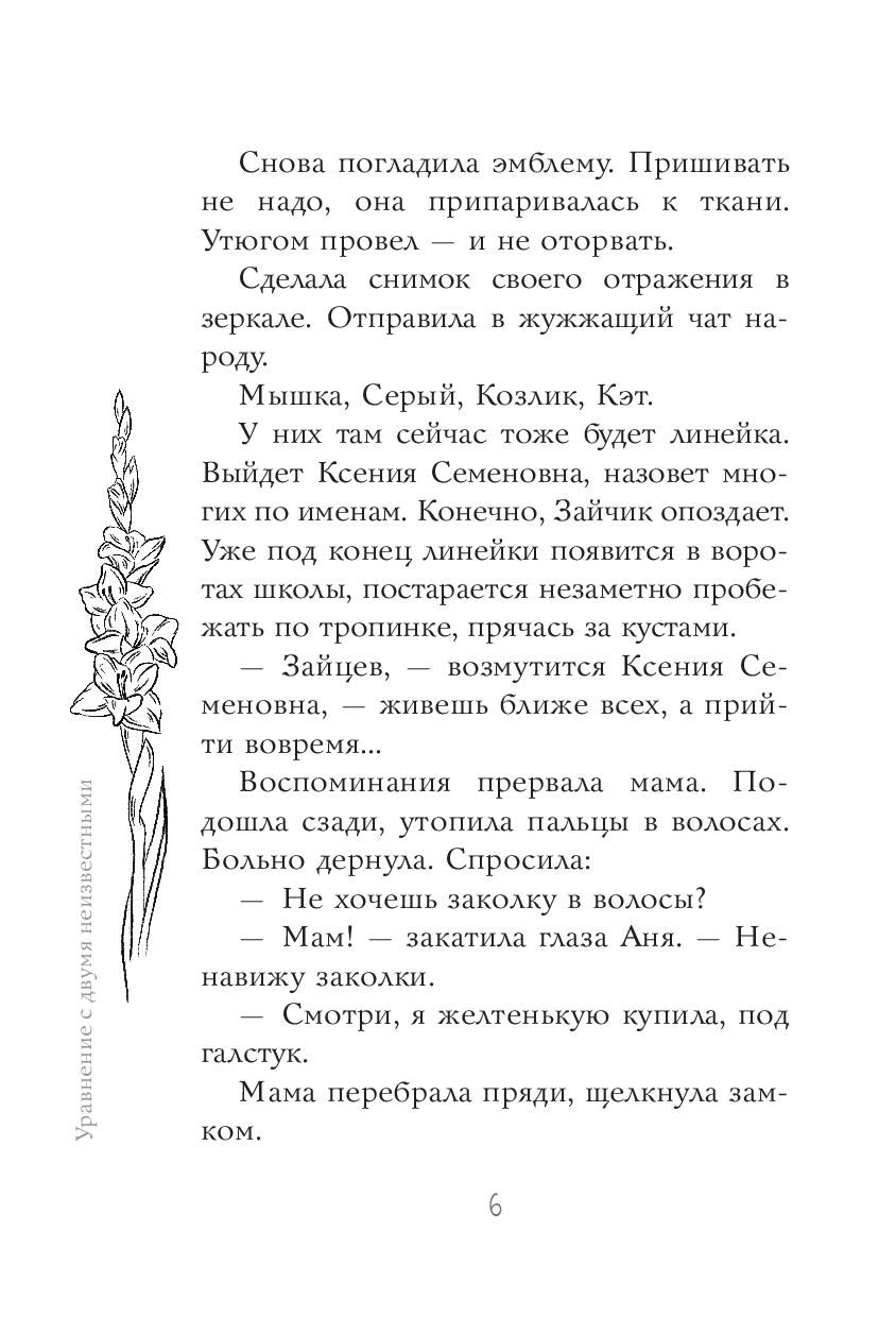 "Уравнение с двумя неизвестными" – роман для девочек знаменитой писательницы Елены Усачёвой. Это история о том, как страшно и волнительно быть новенькой в классе, как завоевать внимание одноклассников и надо ли его завоевывать, как принять людей такими, какие они есть и, самое важное, как верить в себя и принимать себя. Эта книга заставит вас смеяться, переживать и верить, что настоящие друзья появляются именно тогда, когда они нужнее всего!