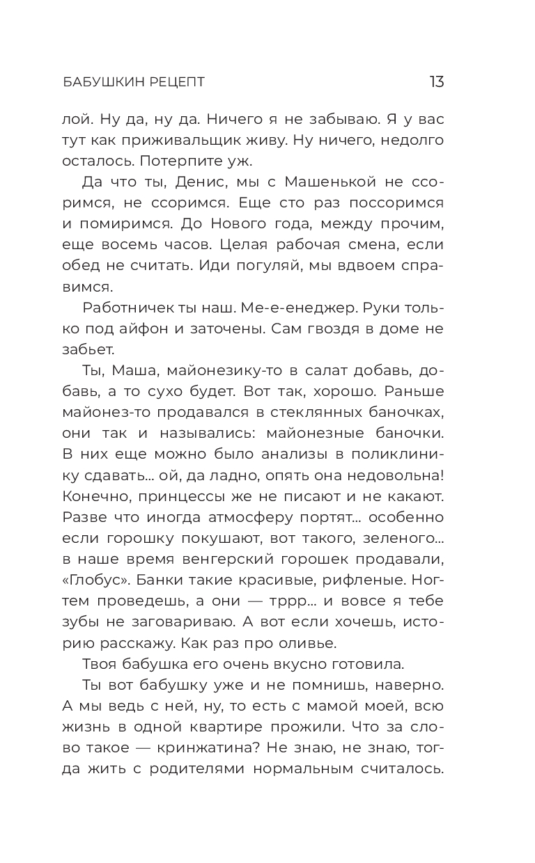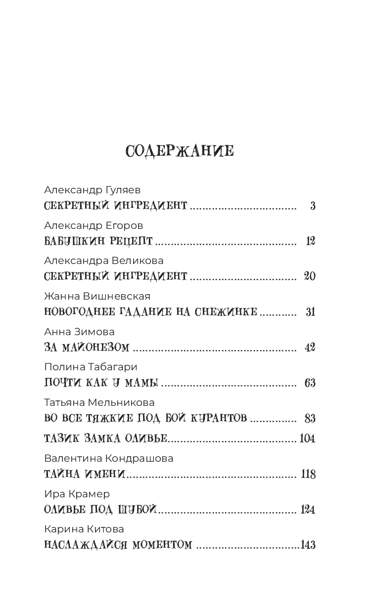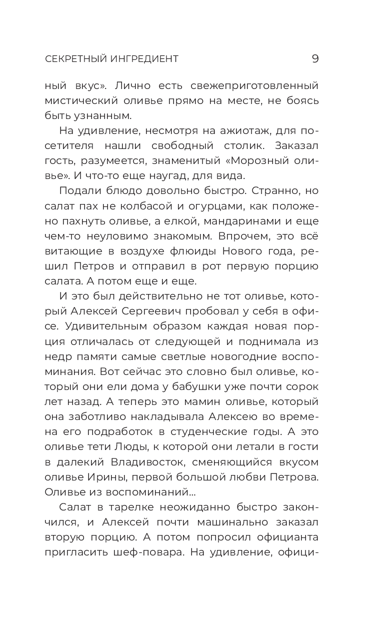 Каждый рассказ – это маленькое приключение, в котором оливье – это не просто салат, а повод для встреч, разлук, а также символ дружбы и любви.