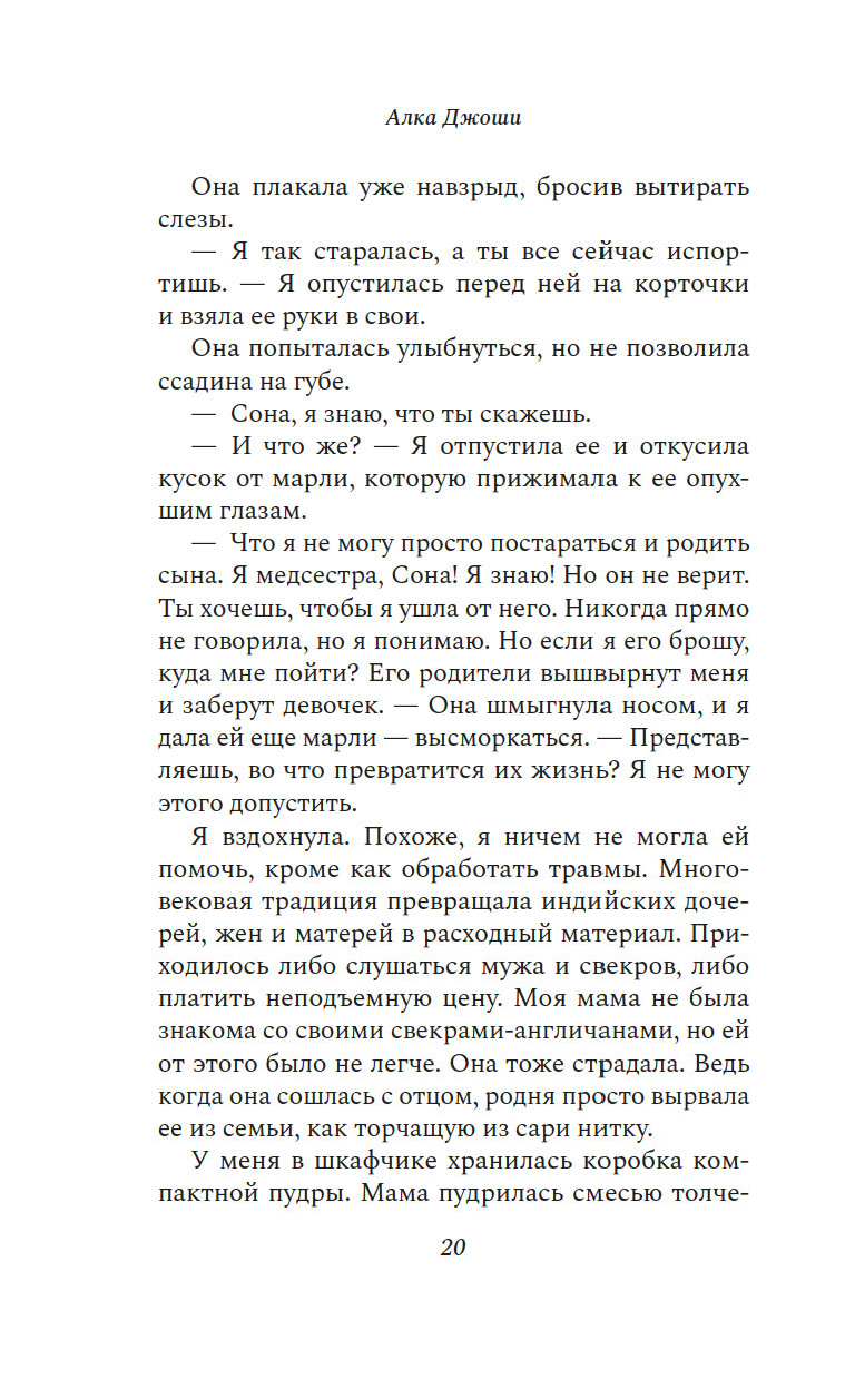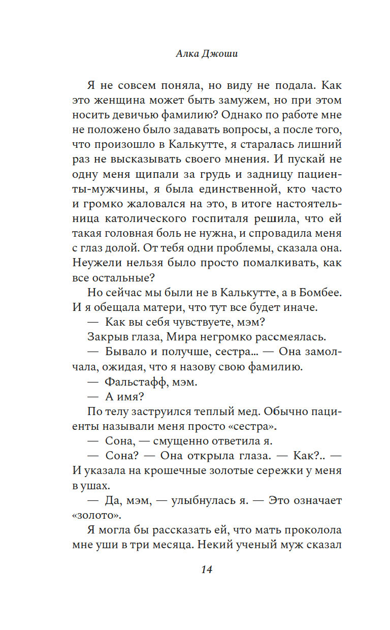 Знакомство с Мирой заставляет Сону осознать, насколько несмело она живет, опасаясь рисковать, пробовать новое и как-то выделяться. Незаконнорожденная дочь индианки и англичанина, она не чувствует принадлежности ни к тому, ни к другому народу.